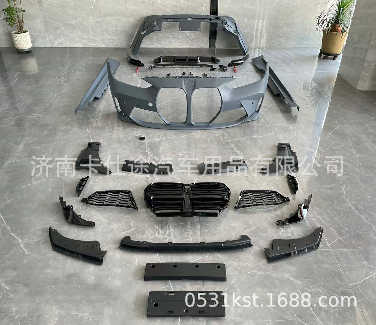 Tags: automotive body styling, BMW 4 series bumper, coupe aero parts, exterior car tuning, front rear apron, G22 body kit, M4 style conversion