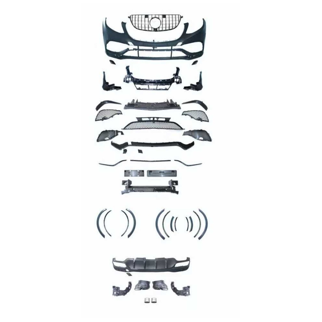 - Precision-engineered conversion kit designed to upgrade the standard W166 GLE-Class exterior to a high-performance AMG GLE63 aesthetic.