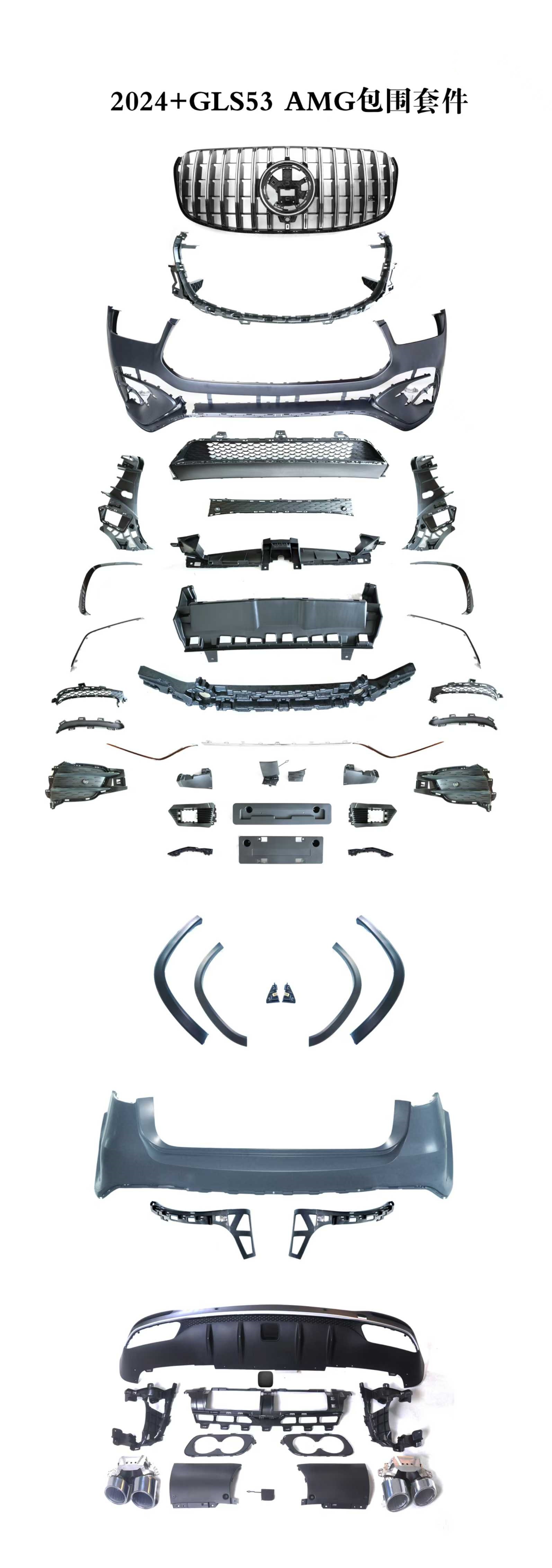 - Precise conversion body kit designed to upgrade the standard Mercedes-Benz GLS-Class X167 to a more aggressive GLS53 aesthetic.
