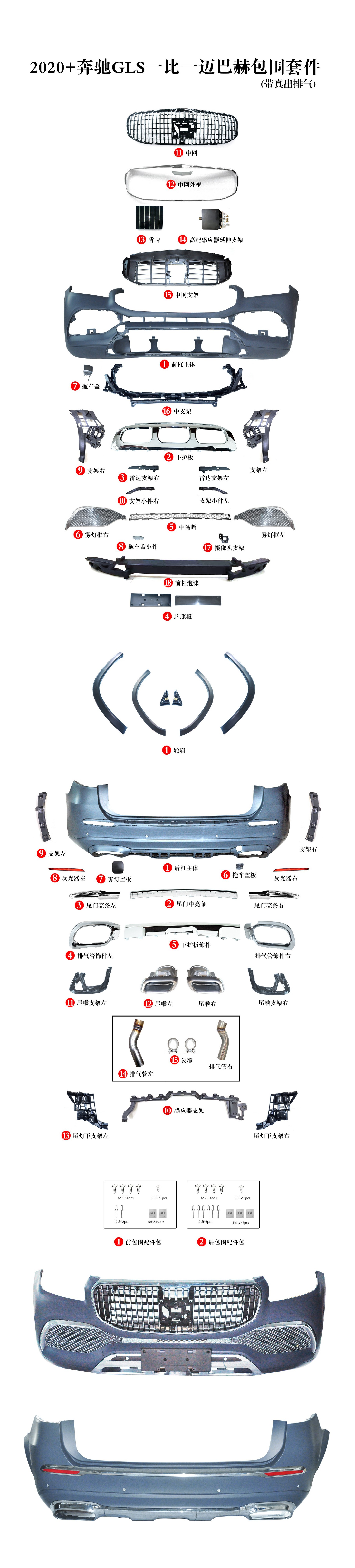 Tags: automotive structural parts, car bumper assembly, GLS body kit, luxury car styling, Maybach style bumper, replacement body kit, X167 exterior upgrade