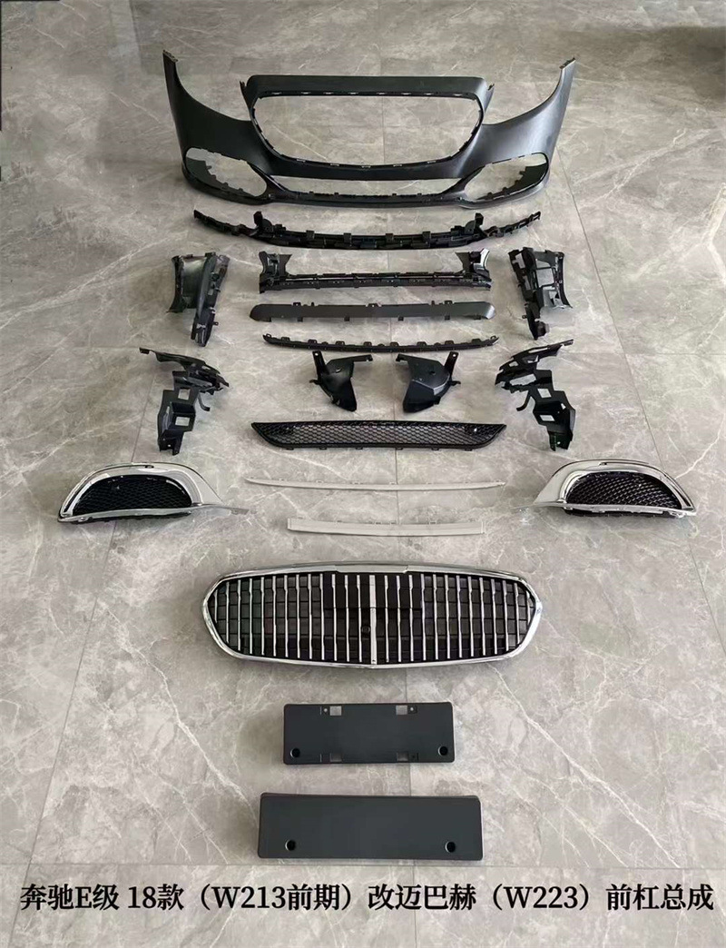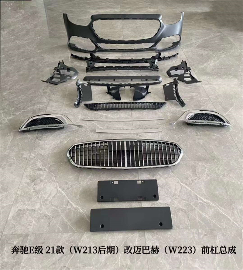 Tags: automotive exterior tuning, E-Class bumper replacement, front bumper assembly, luxury car conversion, Maybach style grille, W213 body kit, W213 facelift parts