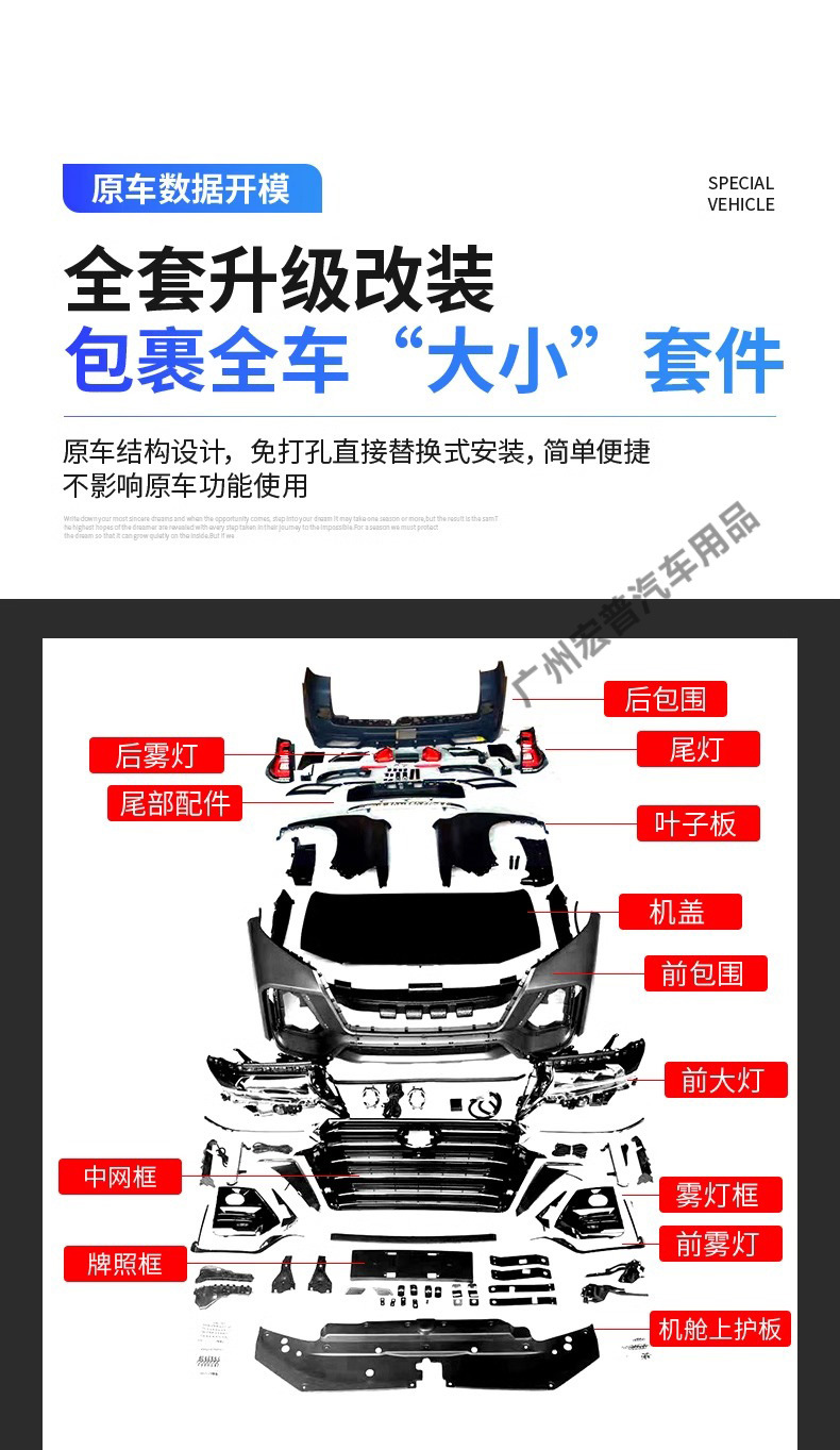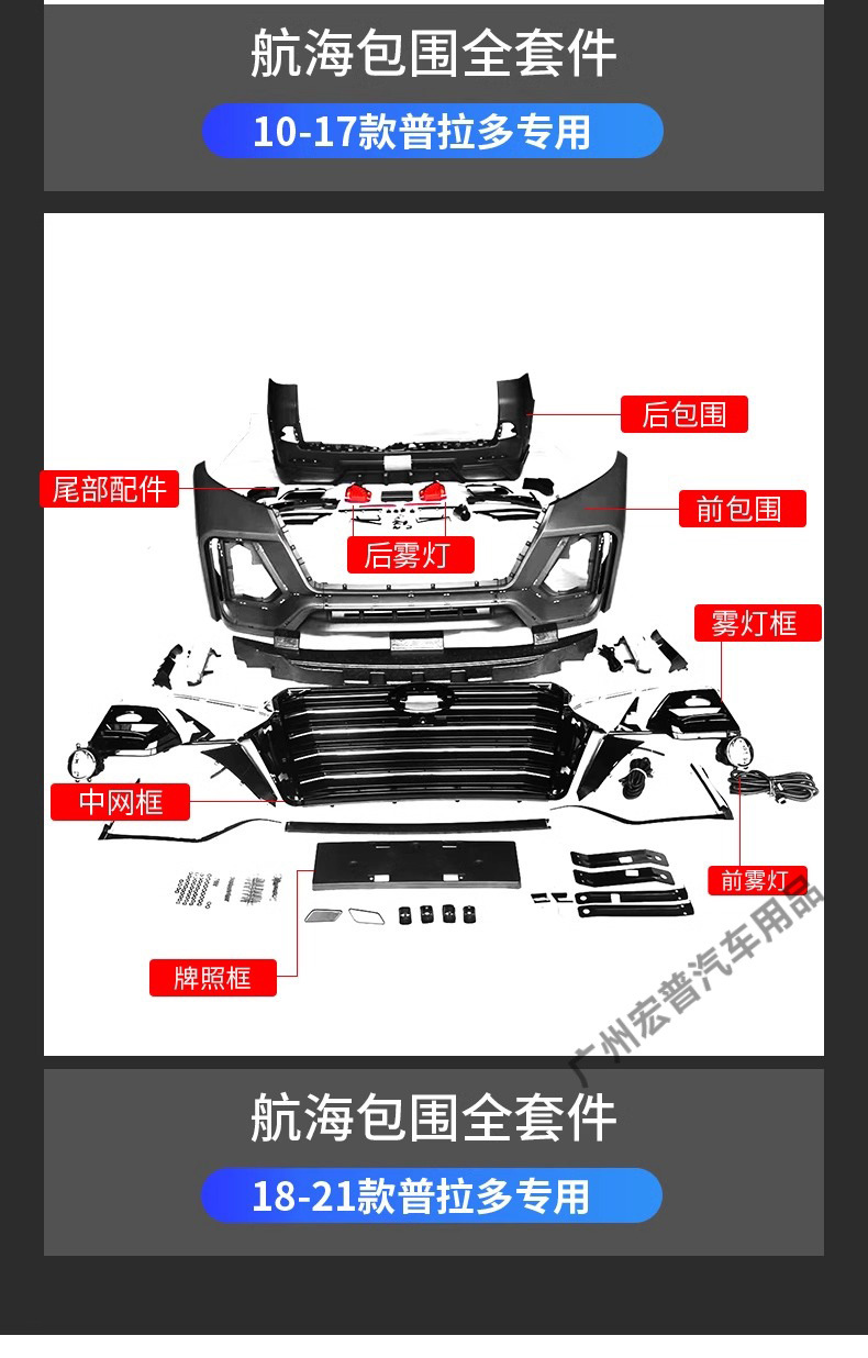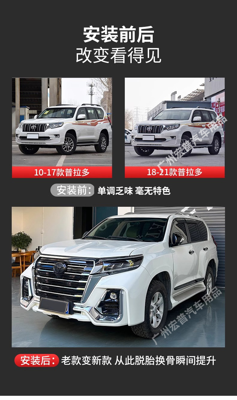 - Comprehensive modification set designed specifically for Toyota Land Cruiser Prado 2010-2017 series models.