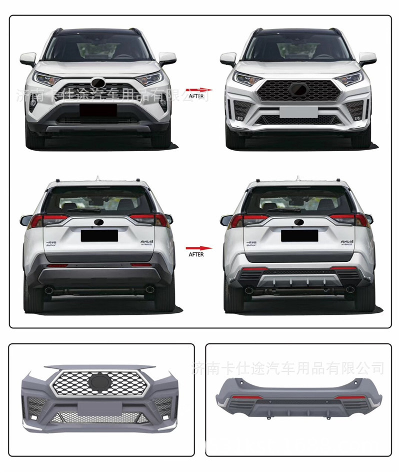 Tags: automotive aero parts, bumper replacement kit, car exterior styling, front bumper guard, RAV4 body kit, rear bumper protector, suv body styling