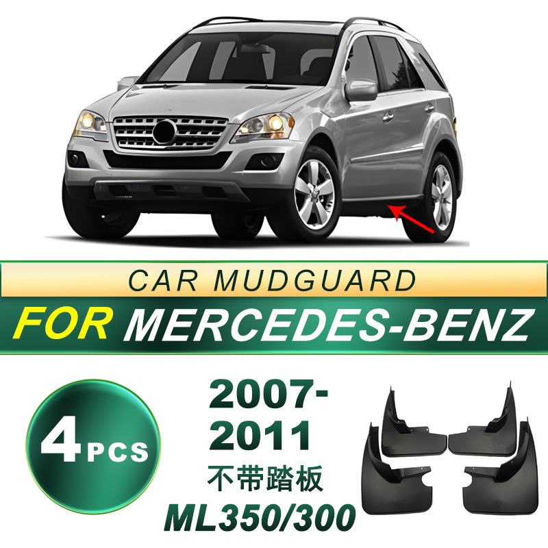 Protect your Mercedes-Benz ML350/ML300 (2007-2011) with these durable rubber mud flaps. Designed for models without running boards to prevent mud and debris damage.