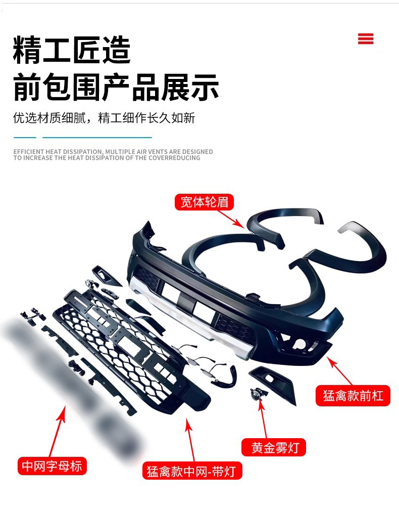 Tags: exterior car accessories, fender flares, Ford Ranger Raptor body kit, front bumper assembly, grille conversion, off-road styling, truck wide body kit