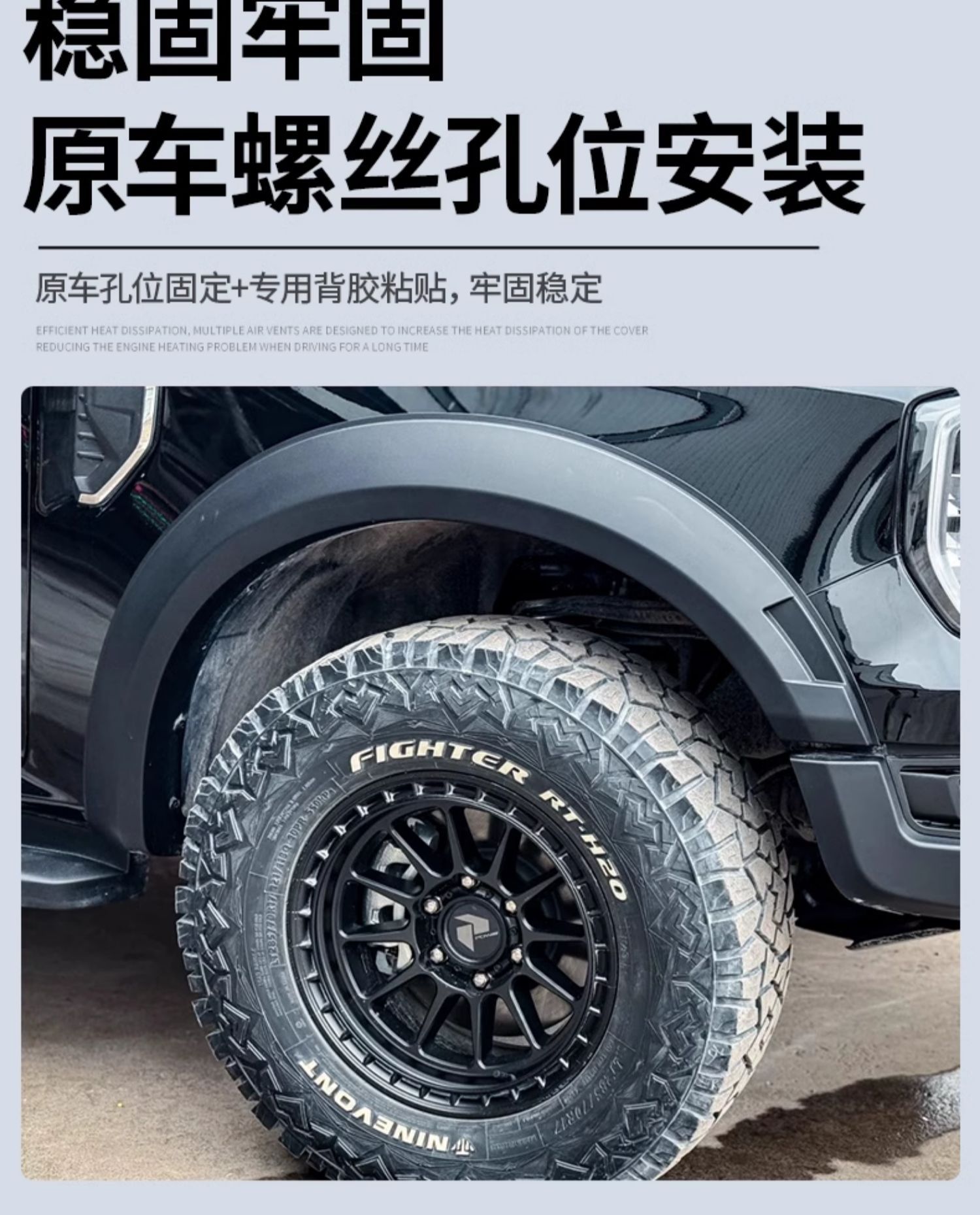 - Features wide-body fender flares to accommodate larger tires and provide a more aggressive stance.