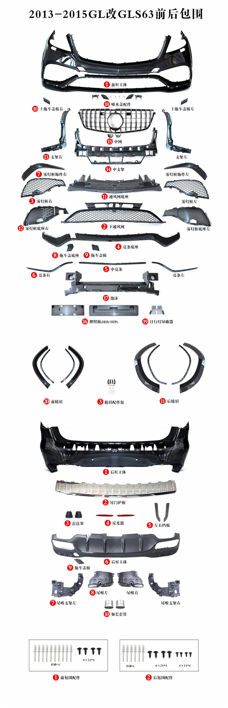 Front Bumper Body Kit GLS63 Style for Mercedes-Benz GL-Class X166 2012-2015 GL350 GL450 GL550
