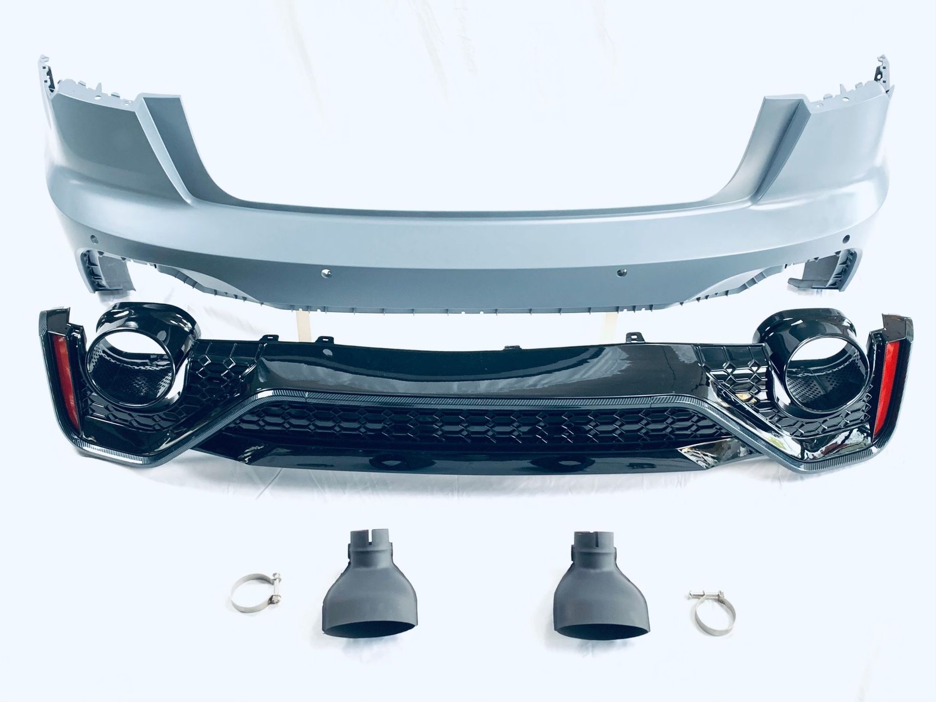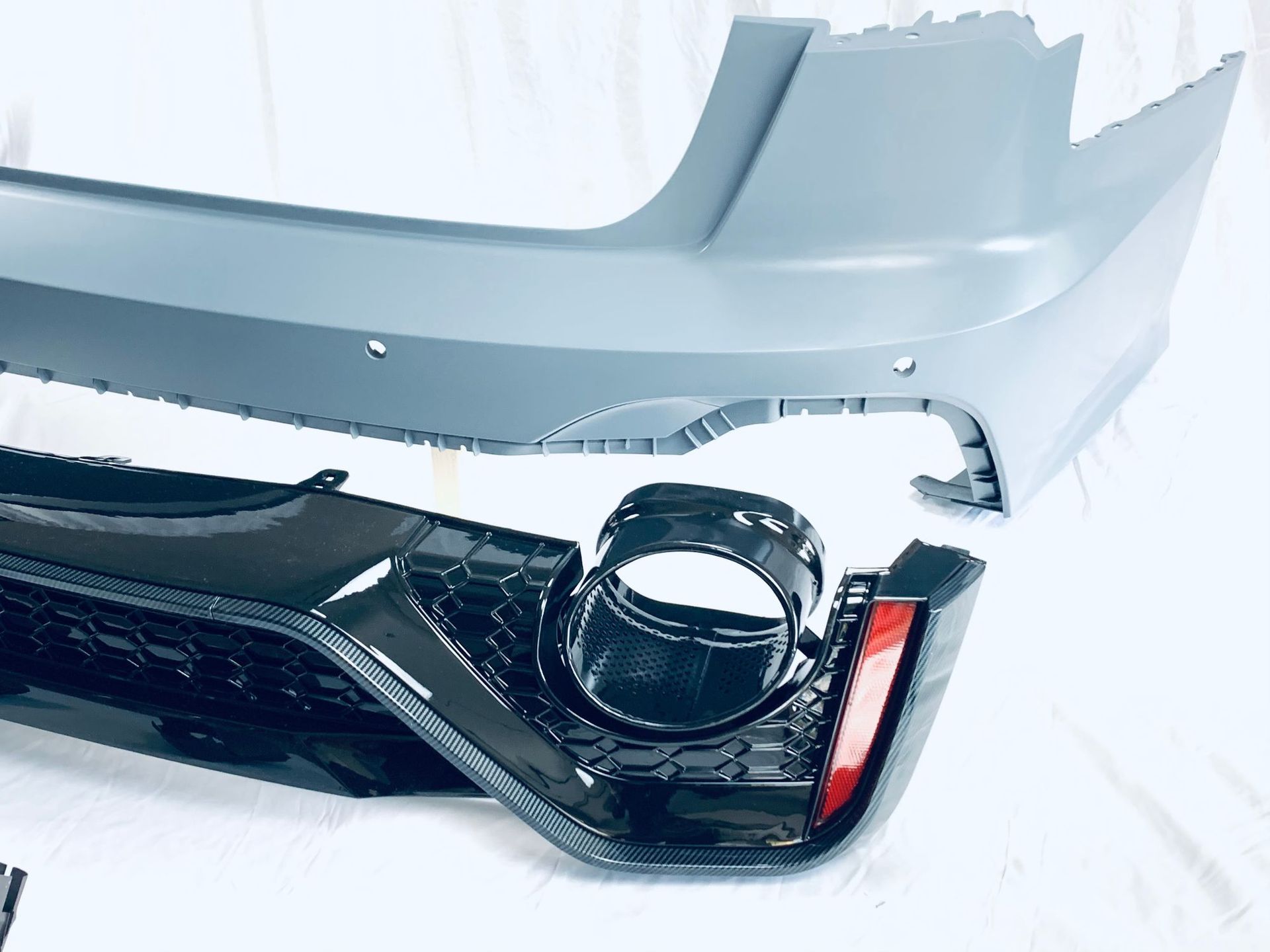 Upgrade your 2019 Audi A6 C8 with this RS6 style body kit. Includes front bumper, honeycomb grille, and rear diffuser with exhaust tips for a premium sporty look.