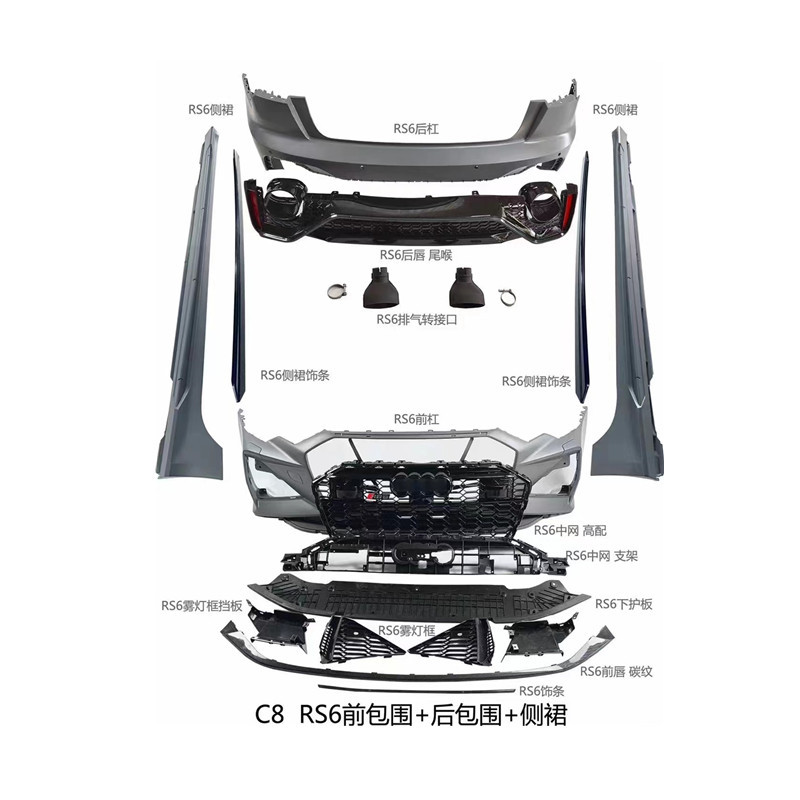 - RS6 Style Upgrade: Transforms standard Audi A6 C8 models into the aggressive RS6 aesthetic with a full body conversion kit.
