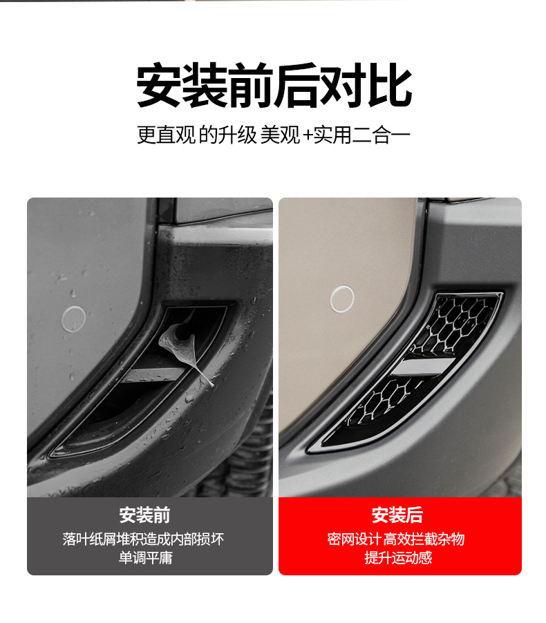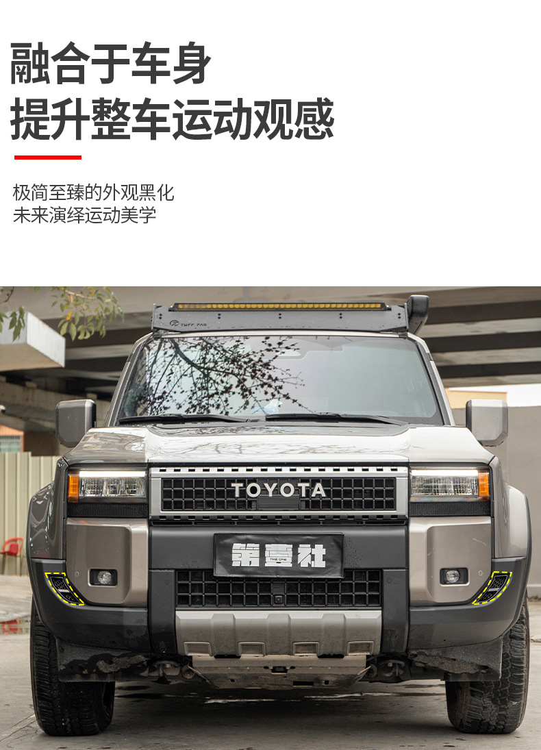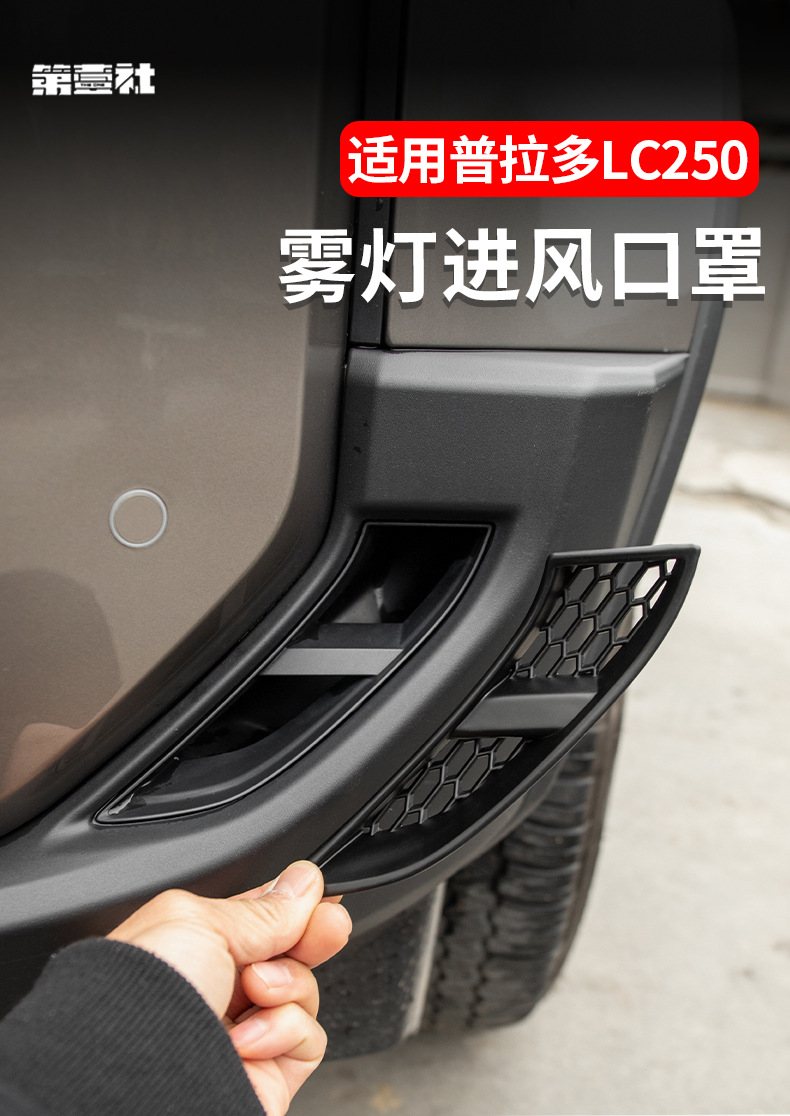 Tags: automotive exterior decoration, bumper vent trim, fog light cover, front lamp shield, intake grille, LC250 accessories, Prado modifications