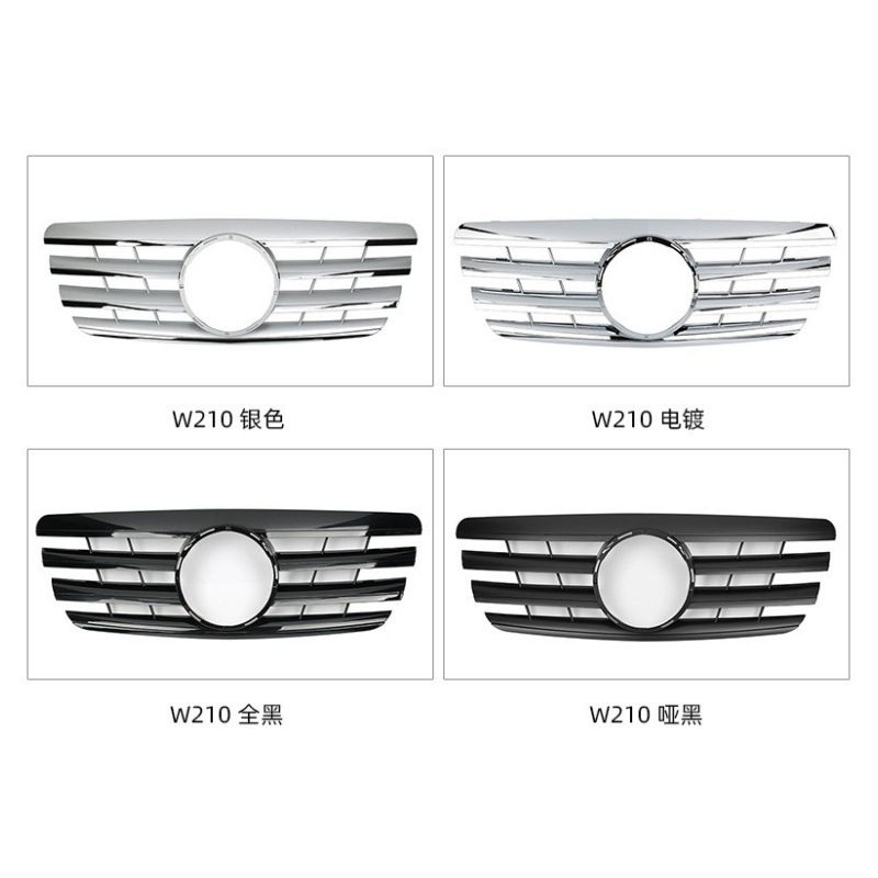 Upgrade your Mercedes-Benz E-Class W210 2000-2002 with this premium 4-bar front radiator grille. Durable ABS construction ensures long-lasting style and airflow.