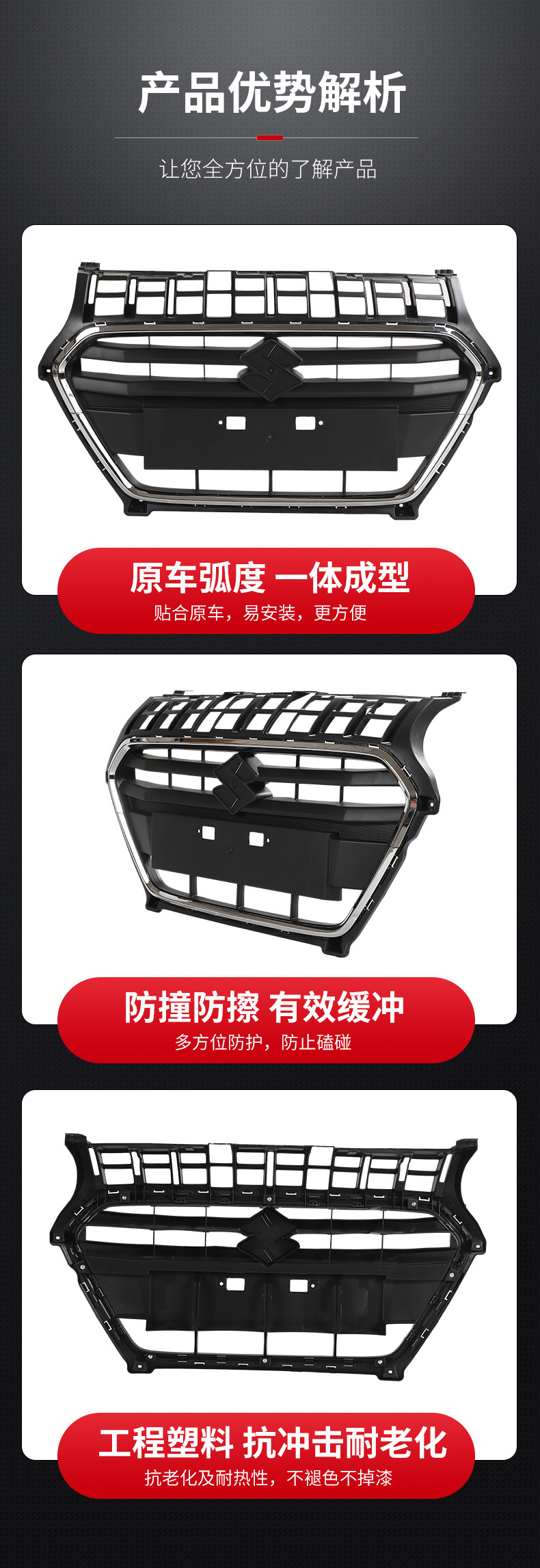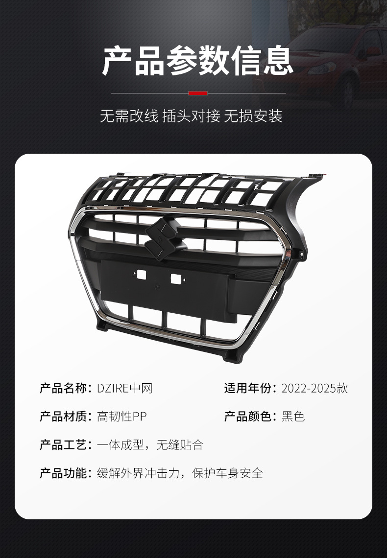 - Precision-engineered to match the front exterior profile of Suzuki Swift and Dzire 2022-2025 models.