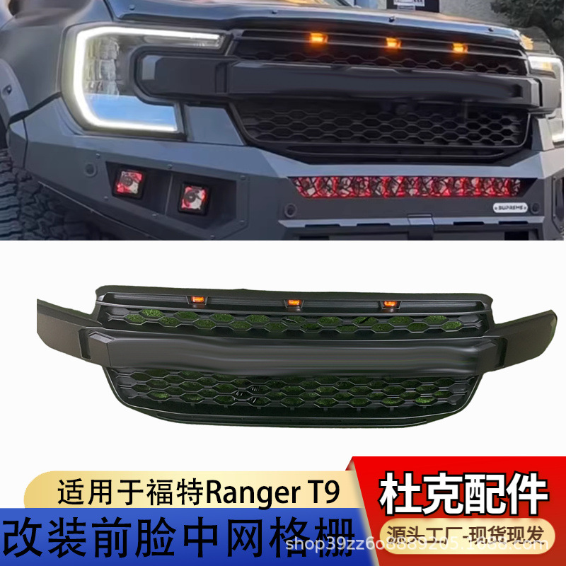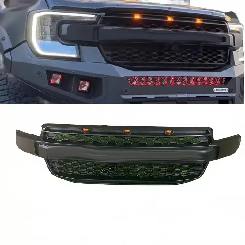 Upgrade your 2023 Ford Ranger T9 with this Raptor-style front grille. Durable ABS mesh construction enhances cooling and adds a rugged off-road aesthetic easily.