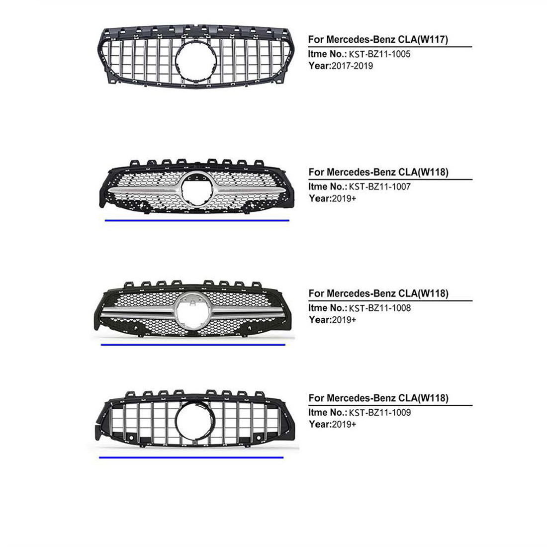 Tags: bumper air intake, car mesh grill, exterior car styling, Front Grille, GT vertical slats, Replacement Grille, W117 radiator grill