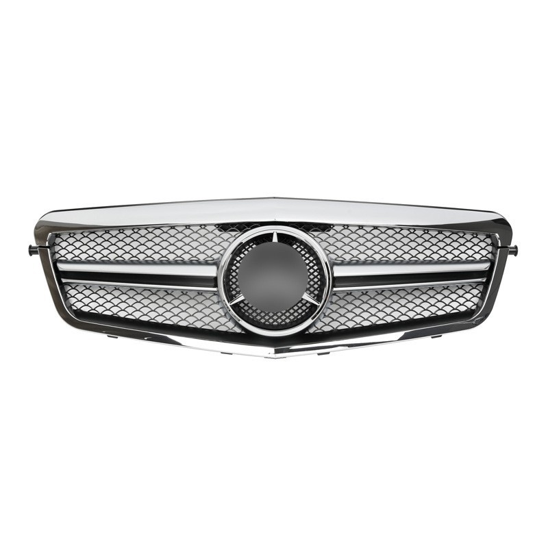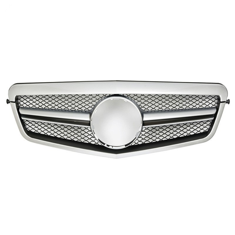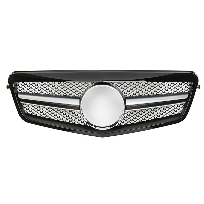Upgrade your vehicle with this AMG style front grille for 2009-2013 E-Class W212. Durable ABS construction with twin-slat design for a sporty, aggressive look.