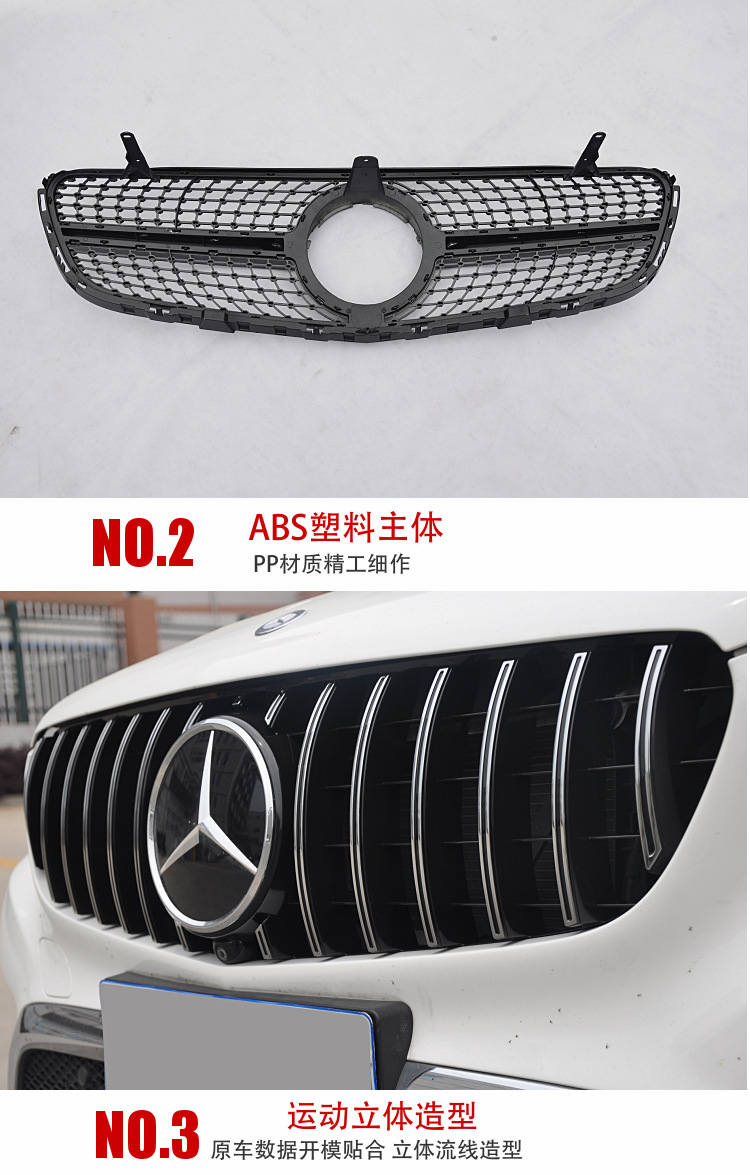 Tags: aftermarket auto body parts, car radiator guard, chrome bumper grille, Front Grille, glc exterior trim, luxury mesh grill
