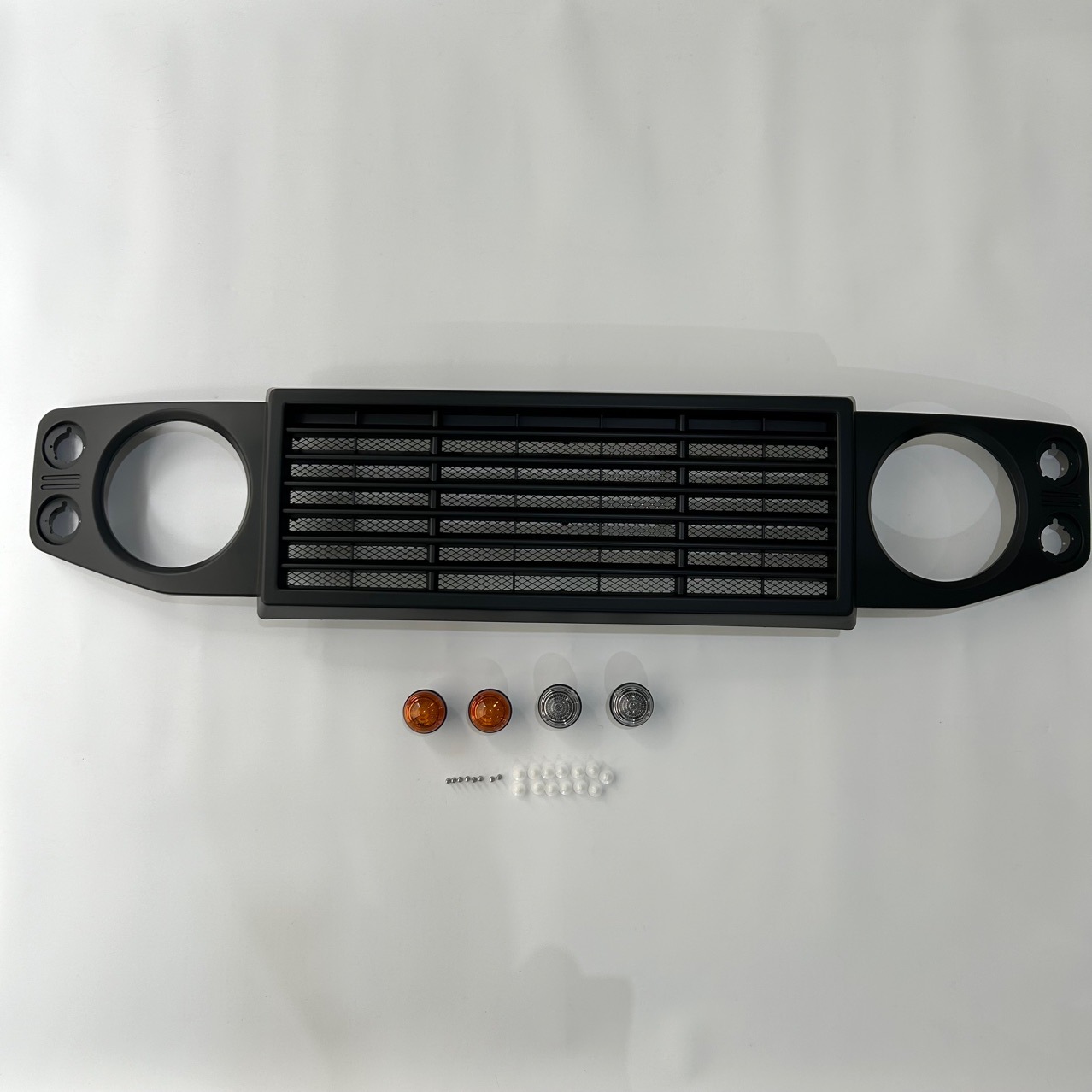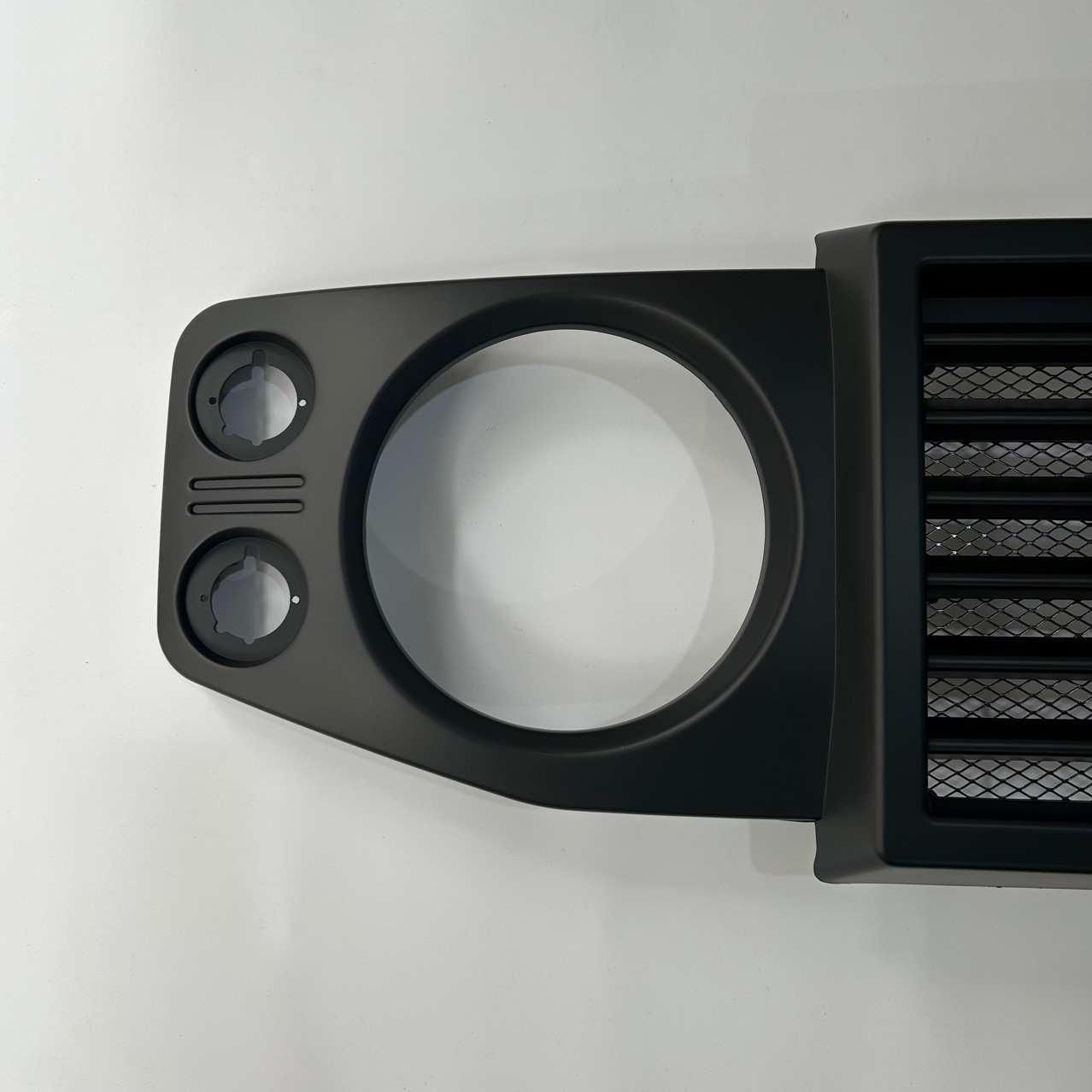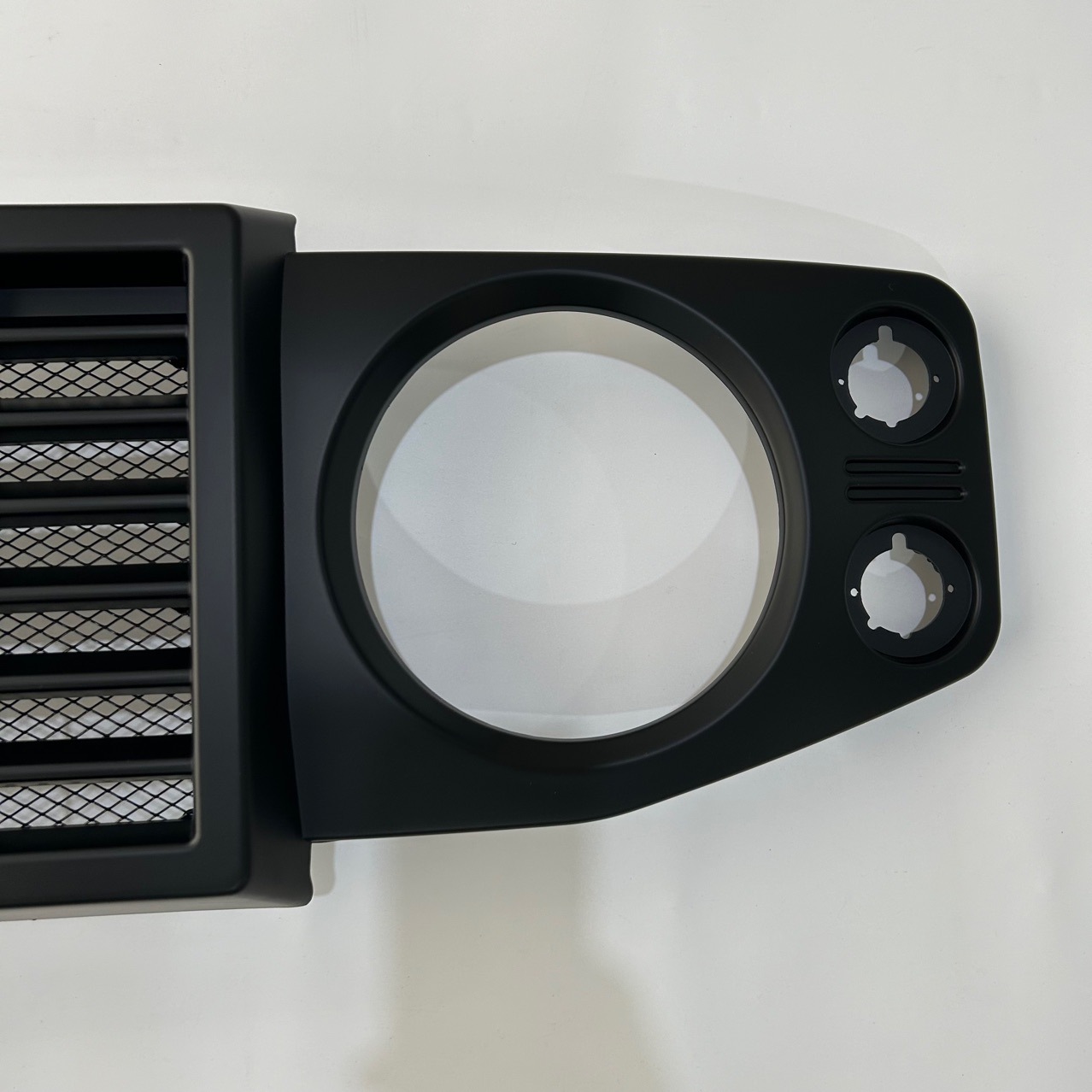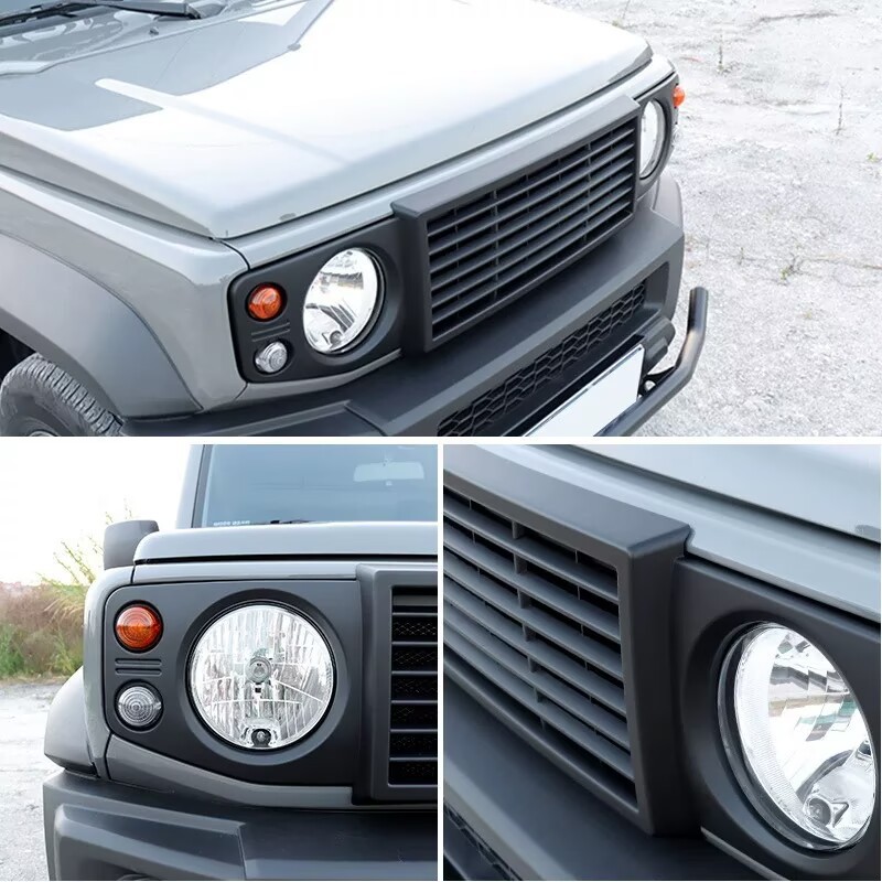 - Integrated Multi-Functional Design: Combines a central mesh grille with integrated headlight housings and accessory light ports to provide a complete rugged transformation for your Jimny.