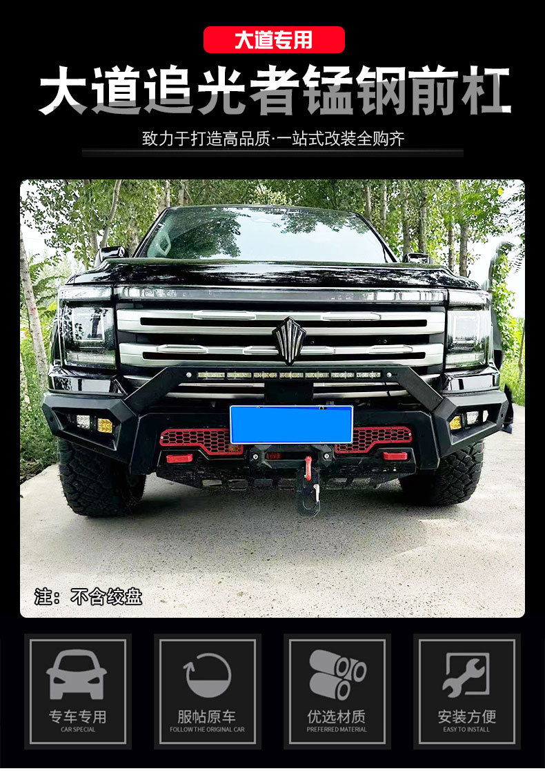 - Specifically engineered for JMC Dadao pickup models ensuring a stable and secure fit for front-end protection.