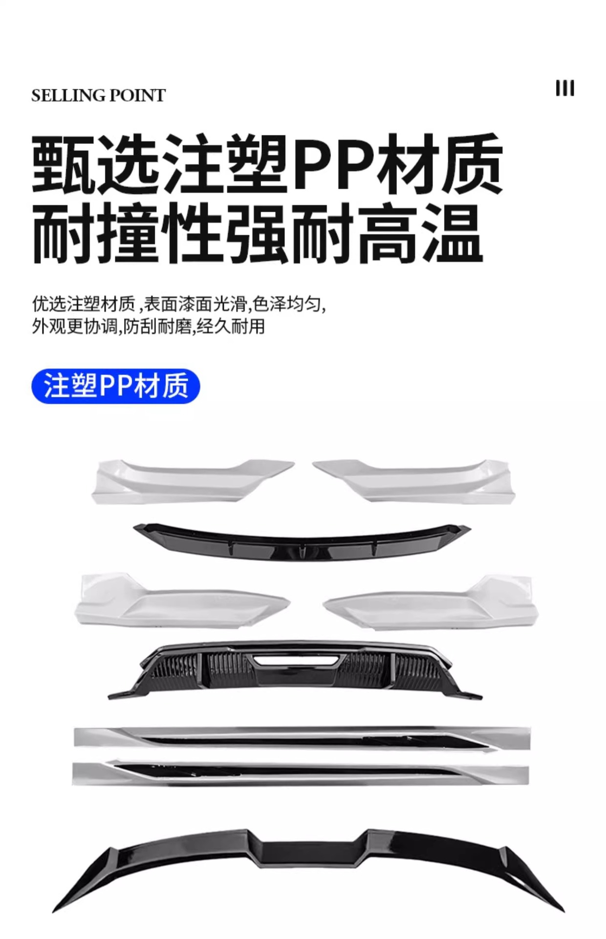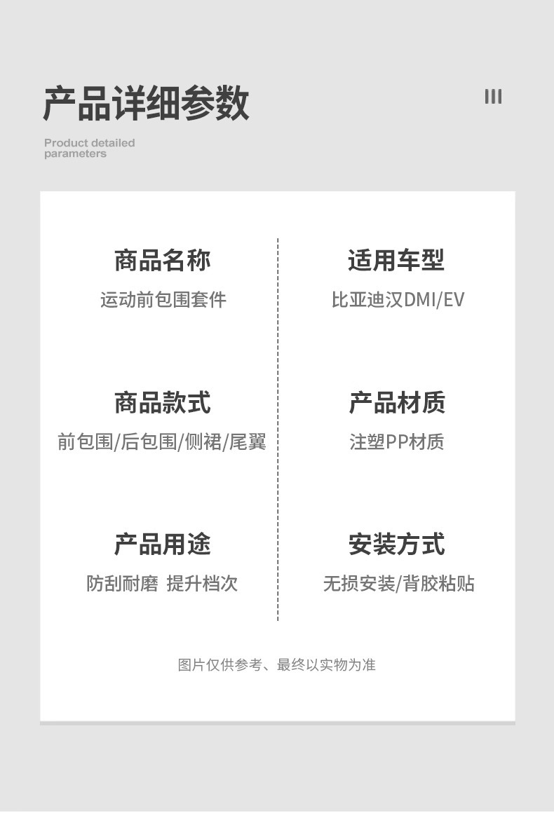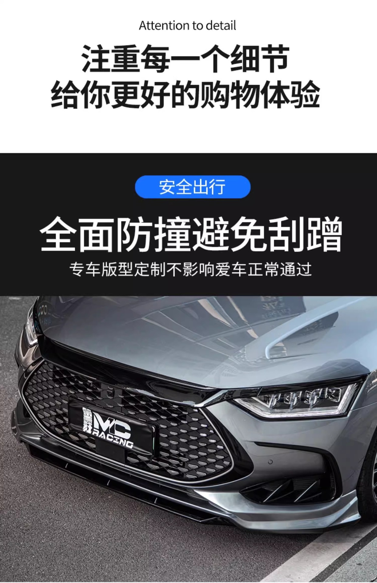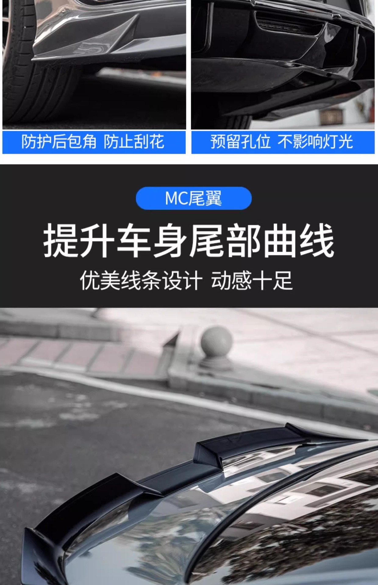 - Aerodynamic enhancement design improves air flow and provides a sporty racing appearance for your vehicle.