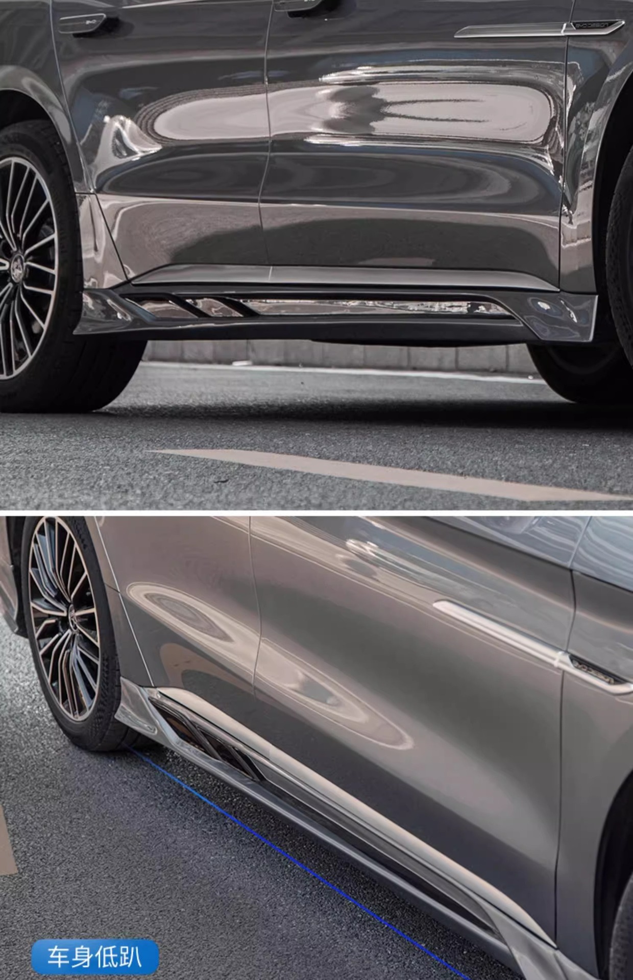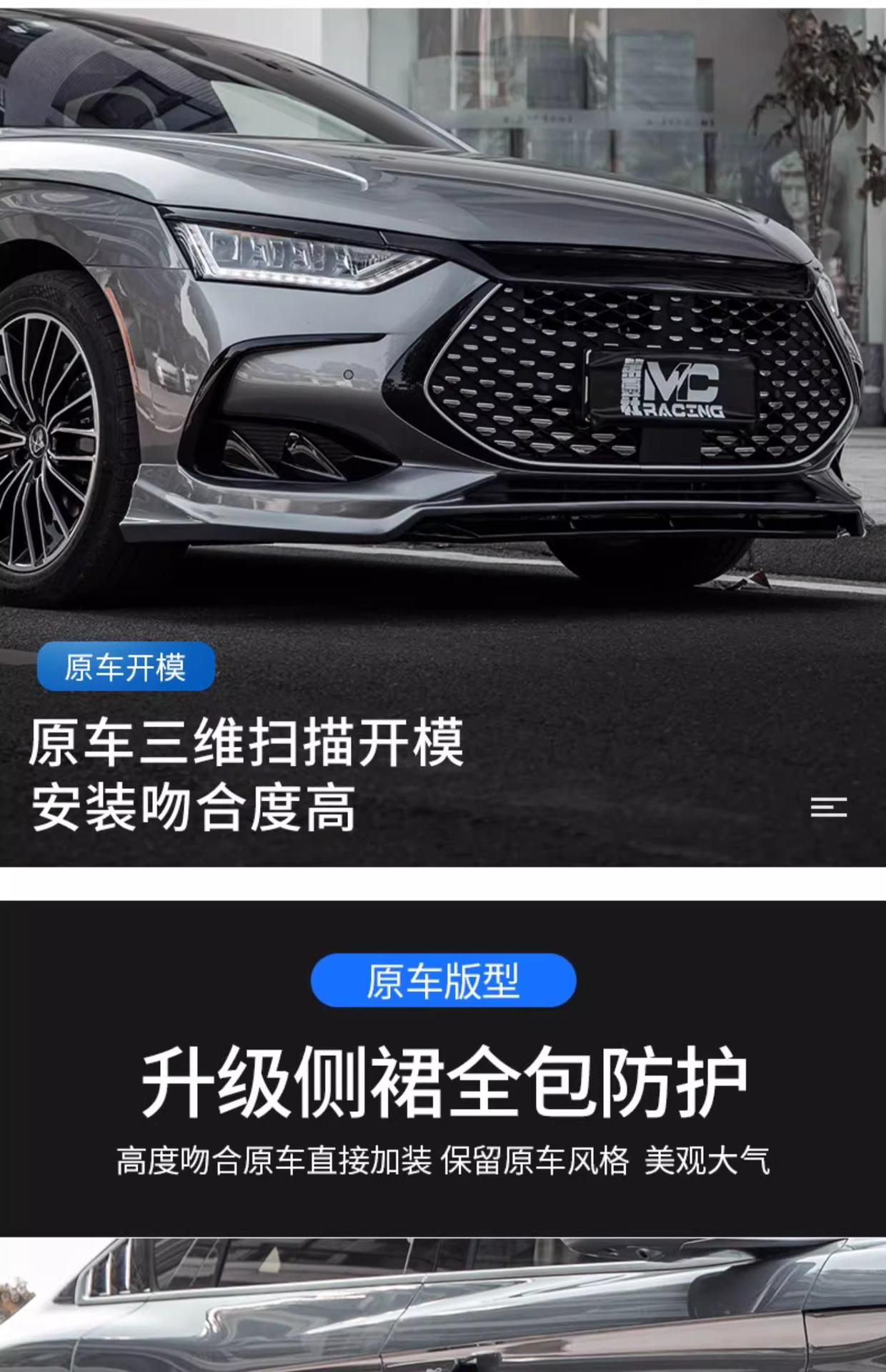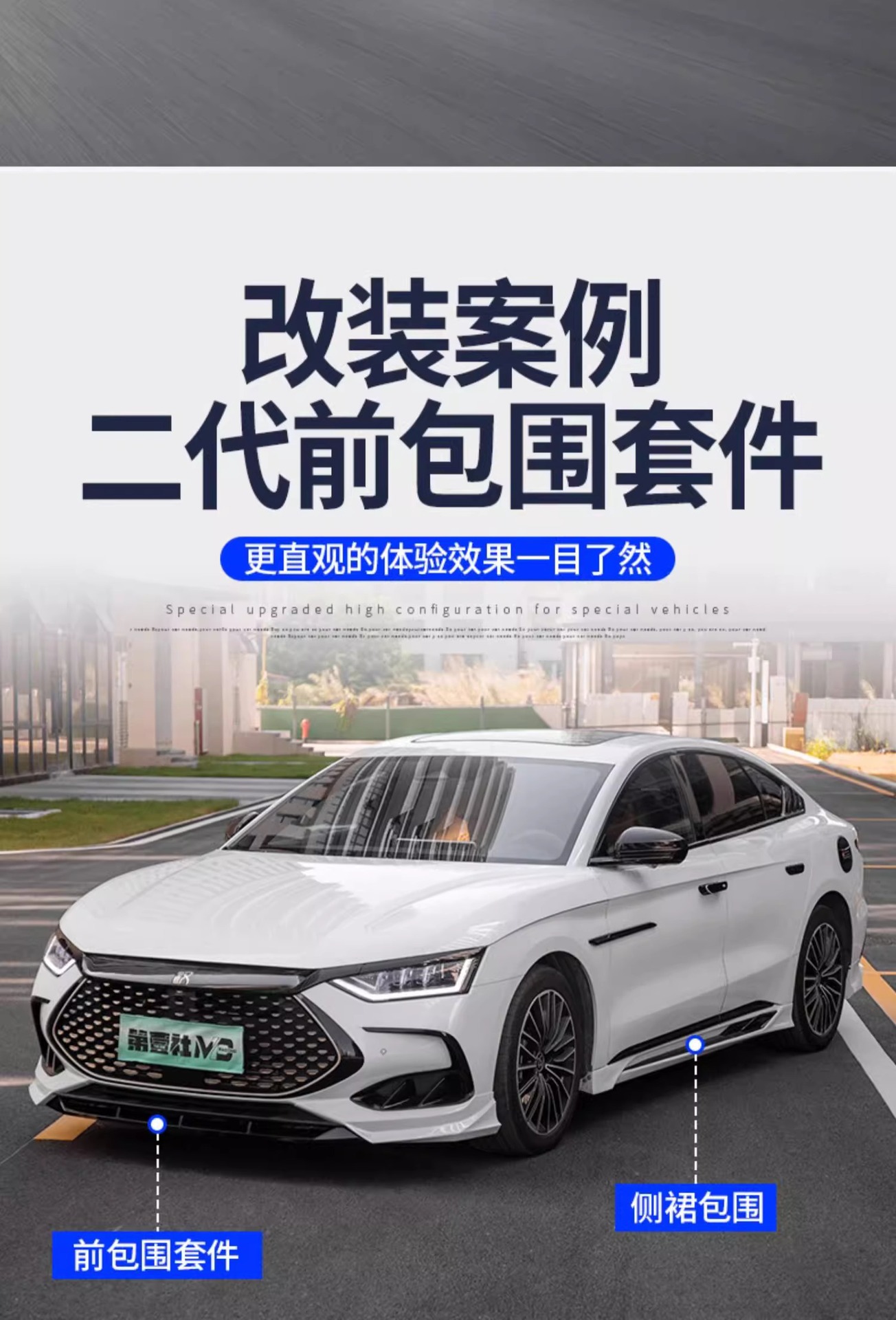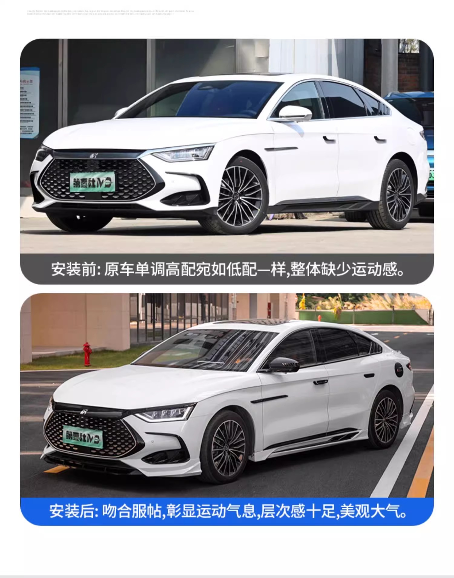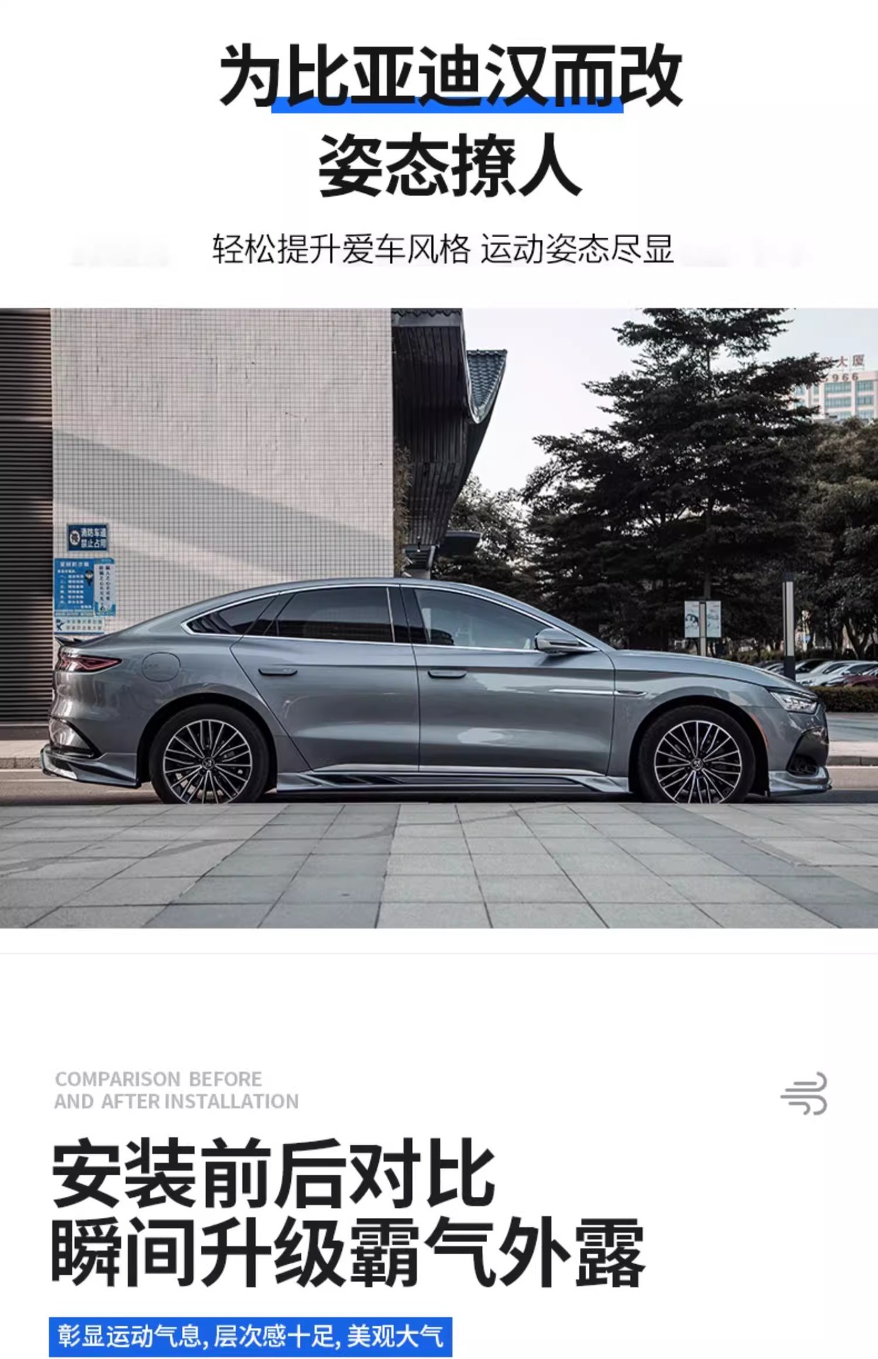 Upgrade your BYD Han EV 2022-2024 with our premium front bumper lip and side skirts body kit. Enhance aerodynamics and achieve a sleek sporty look today.