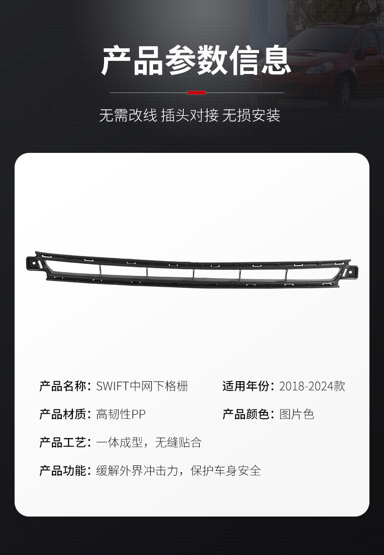 - Specifically designed for compatible Suzuki Swift models to ensure a seamless front-end integration.