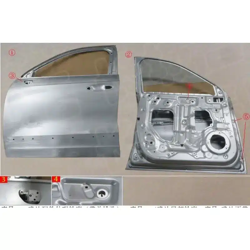 A: This listing typically includes the door shell (outer panel and frame) only. Window glass, regulators, handles, locks, and trim panels are not included unless specifically shown in product images.