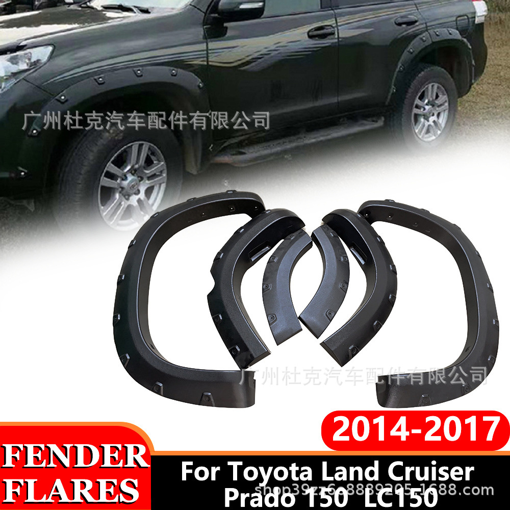 Upgrade your Toyota Land Cruiser Prado FJ150 2014-2017 with durable fender flares. High-quality ABS wheel arch trim provides superior protection and a rugged look.