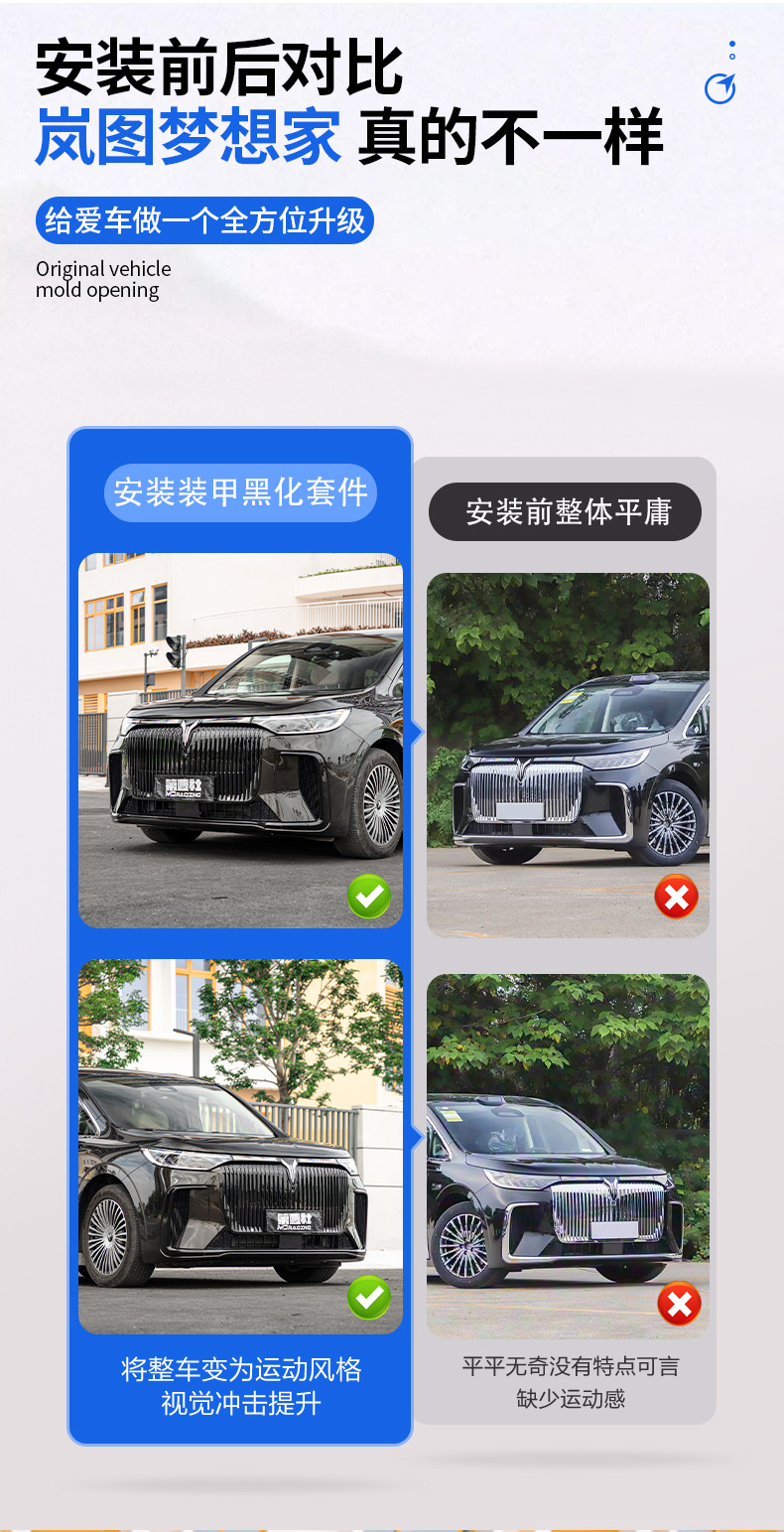 - Precise Exterior Fitment: Specifically engineered for the VOYAH Dreamer front grille contours to provide a seamless integrated appearance.