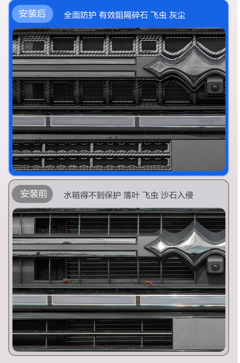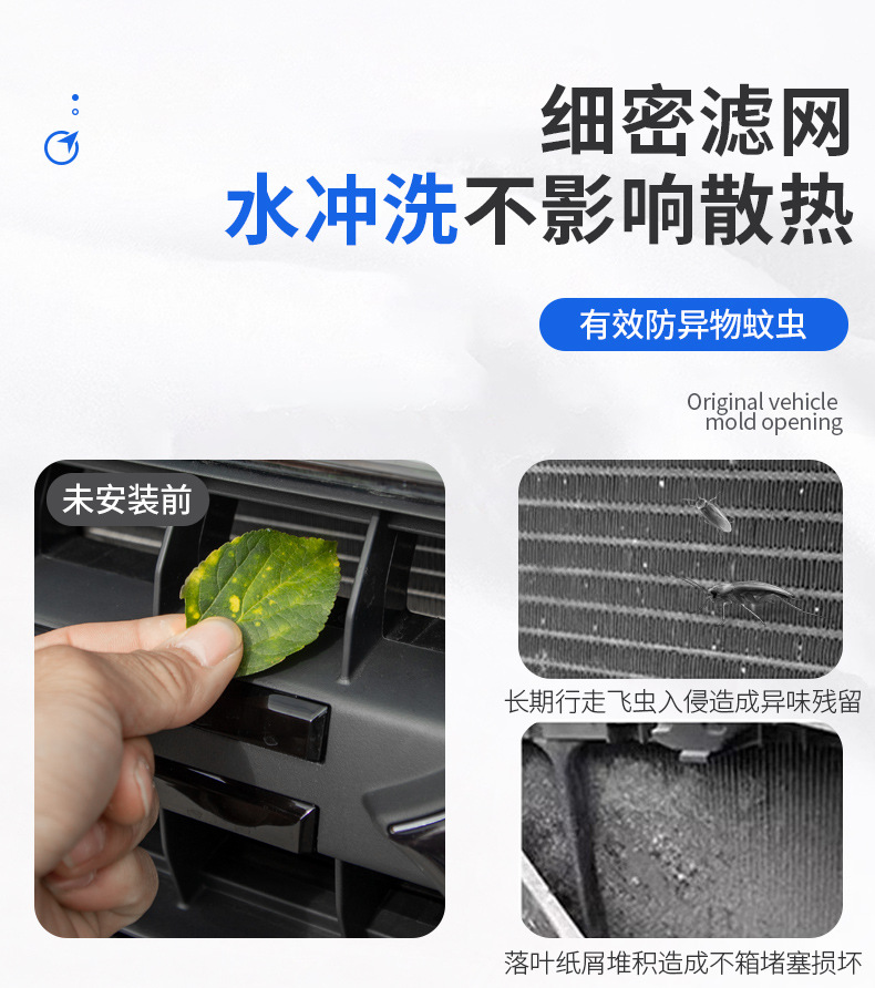 Tags: car exterior accessories, dustproof net cover, front mesh guard, grille insect net, protective mesh insert, radiator protection screen