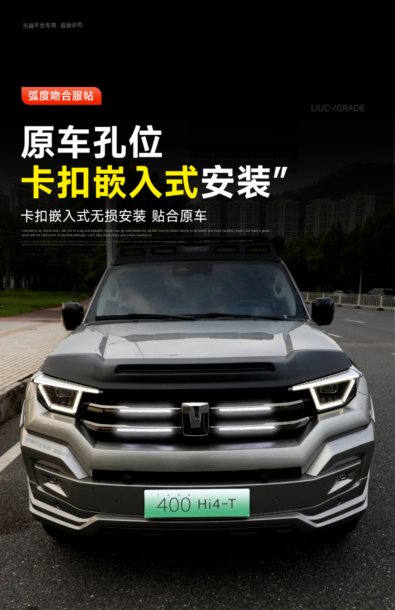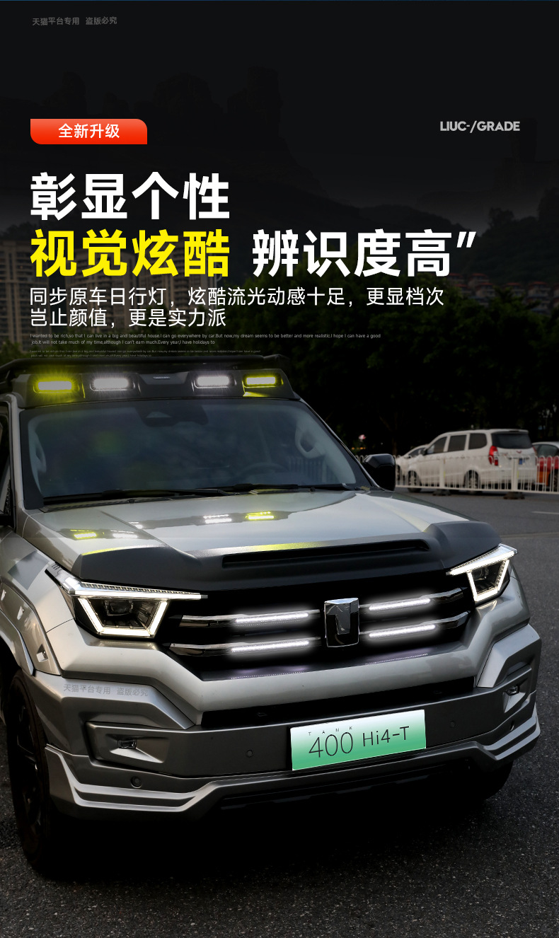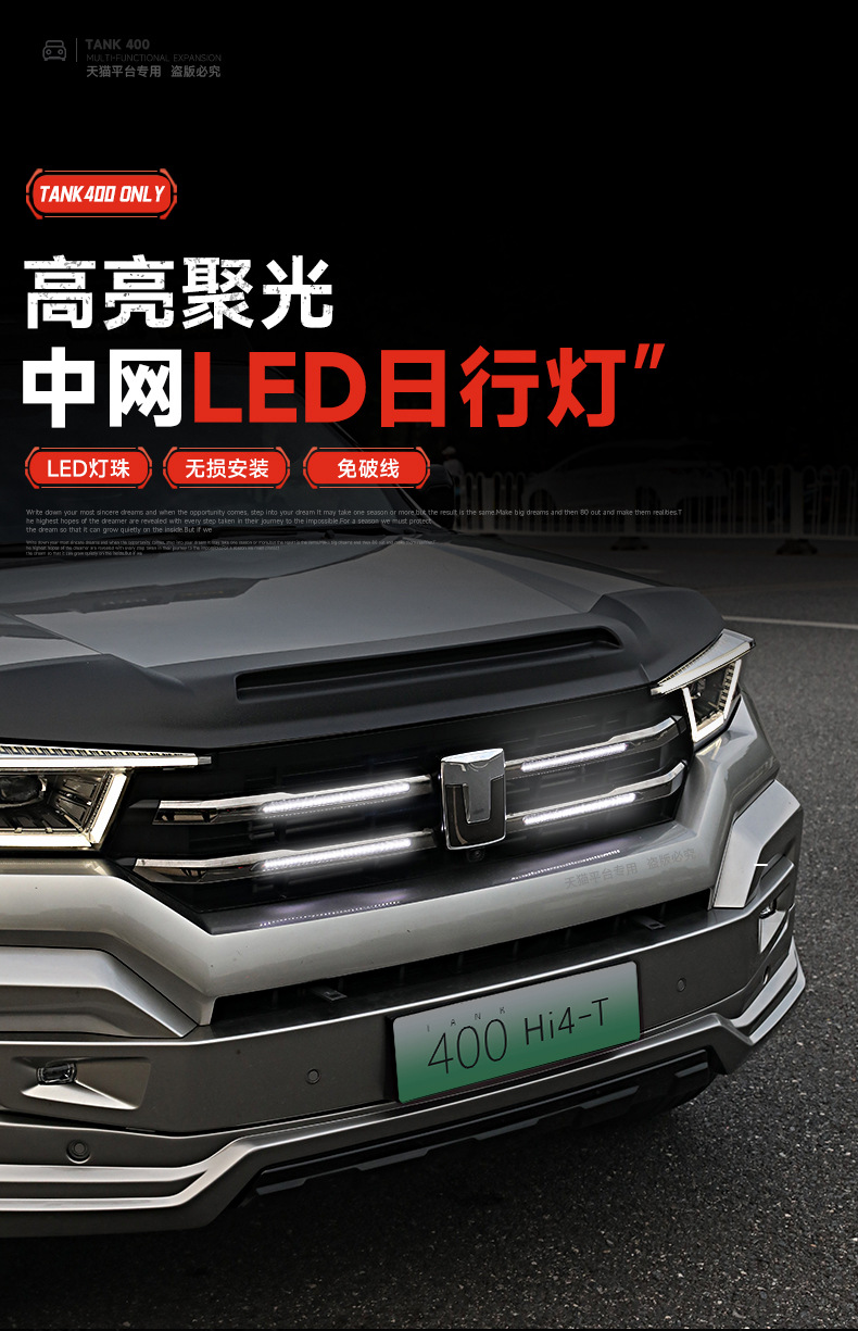 Front Grille LED Daytime Running Lights and Center Logo Light Assembly for Tank 400 Hi4-T Exterior Modification