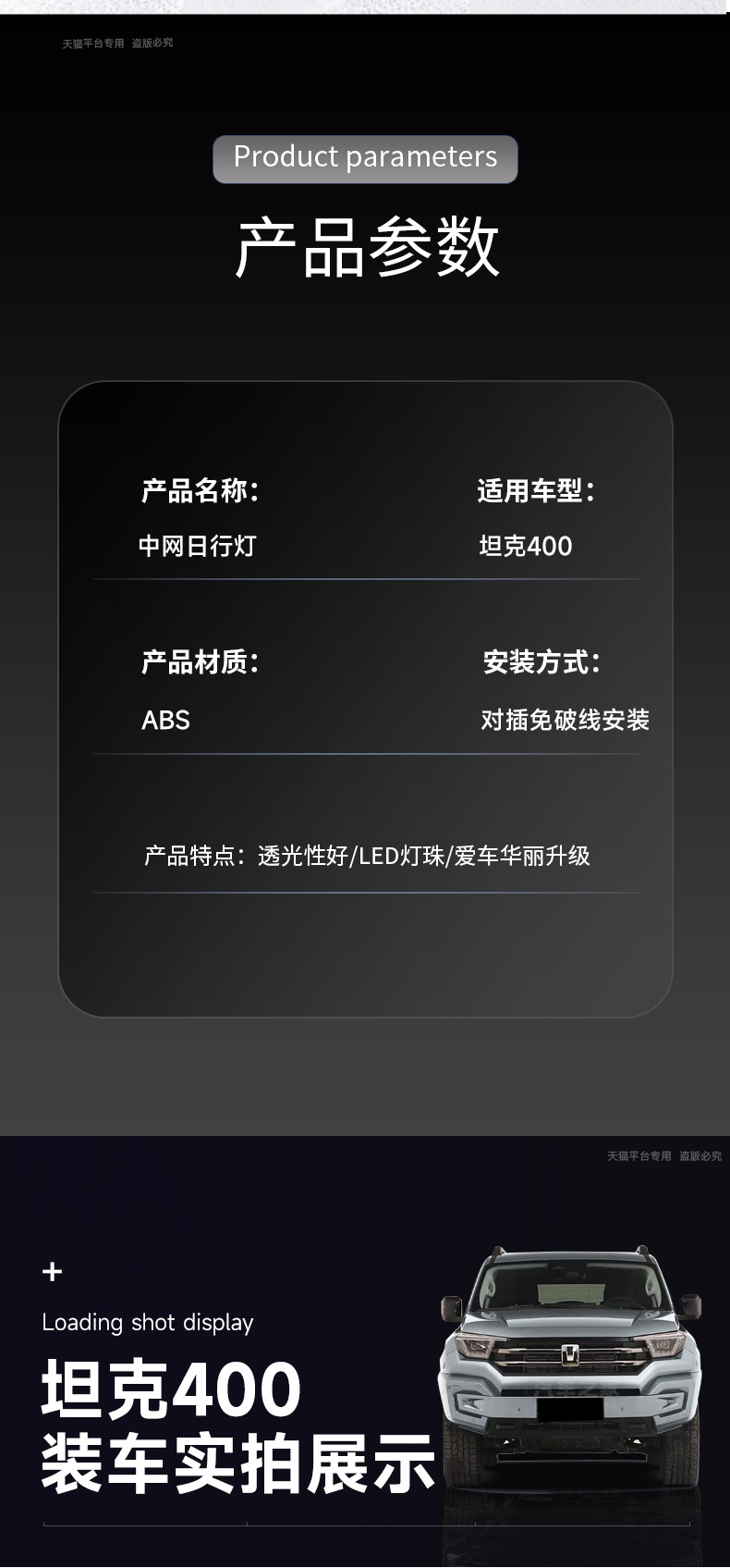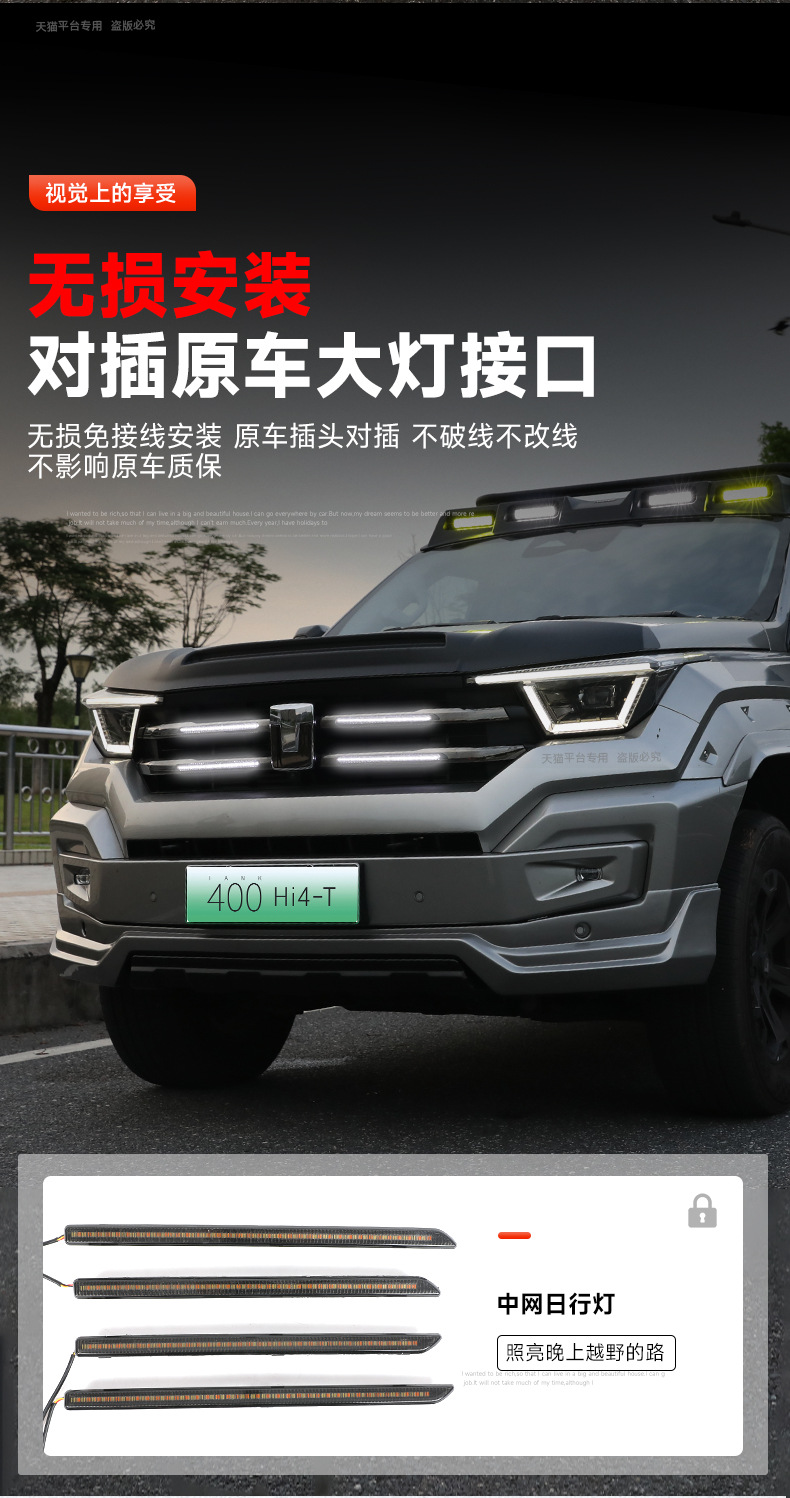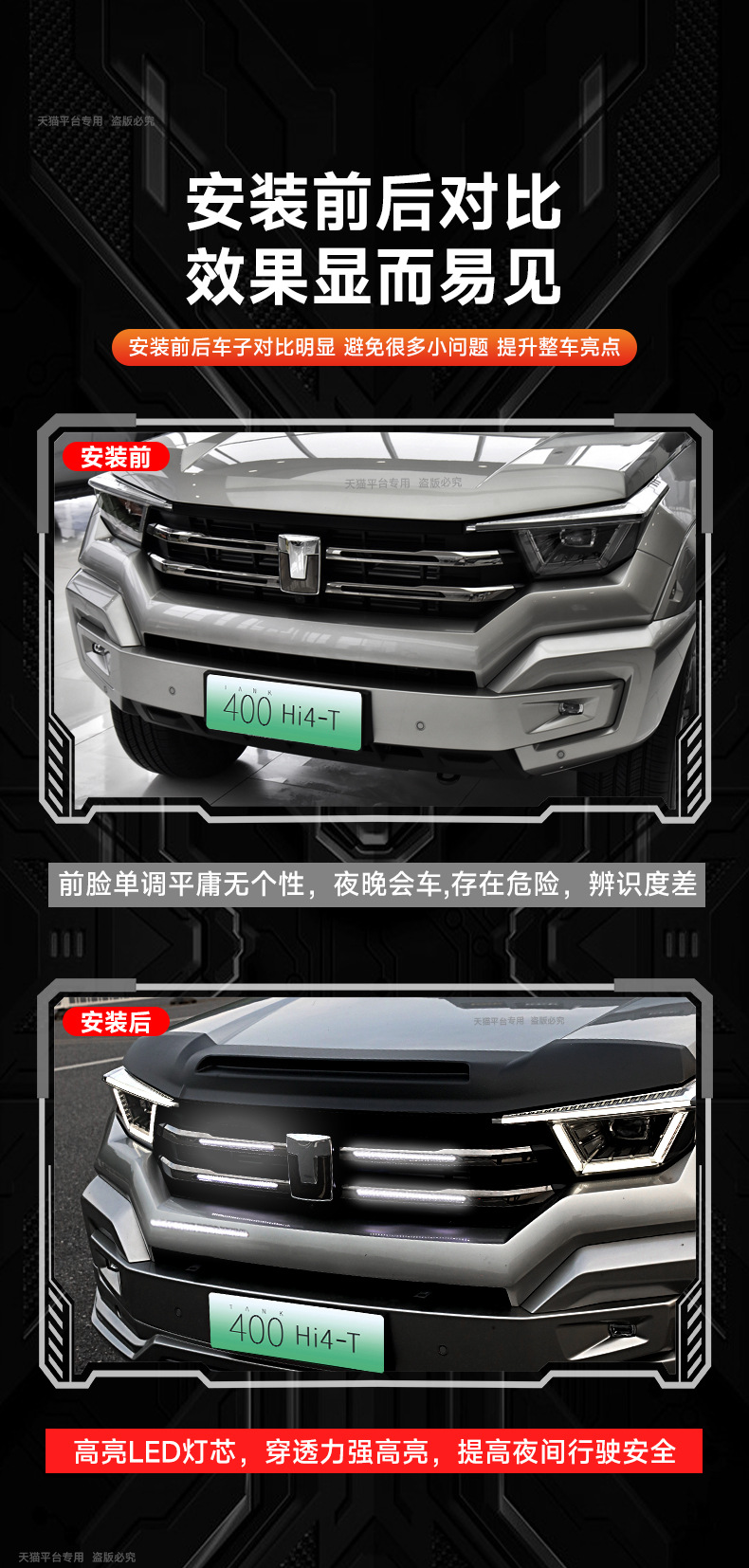 Front Grille LED Daytime Running Lights and Center Logo Light Assembly for Tank 400 Hi4-T Exterior Modification
