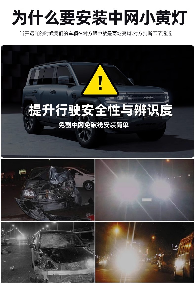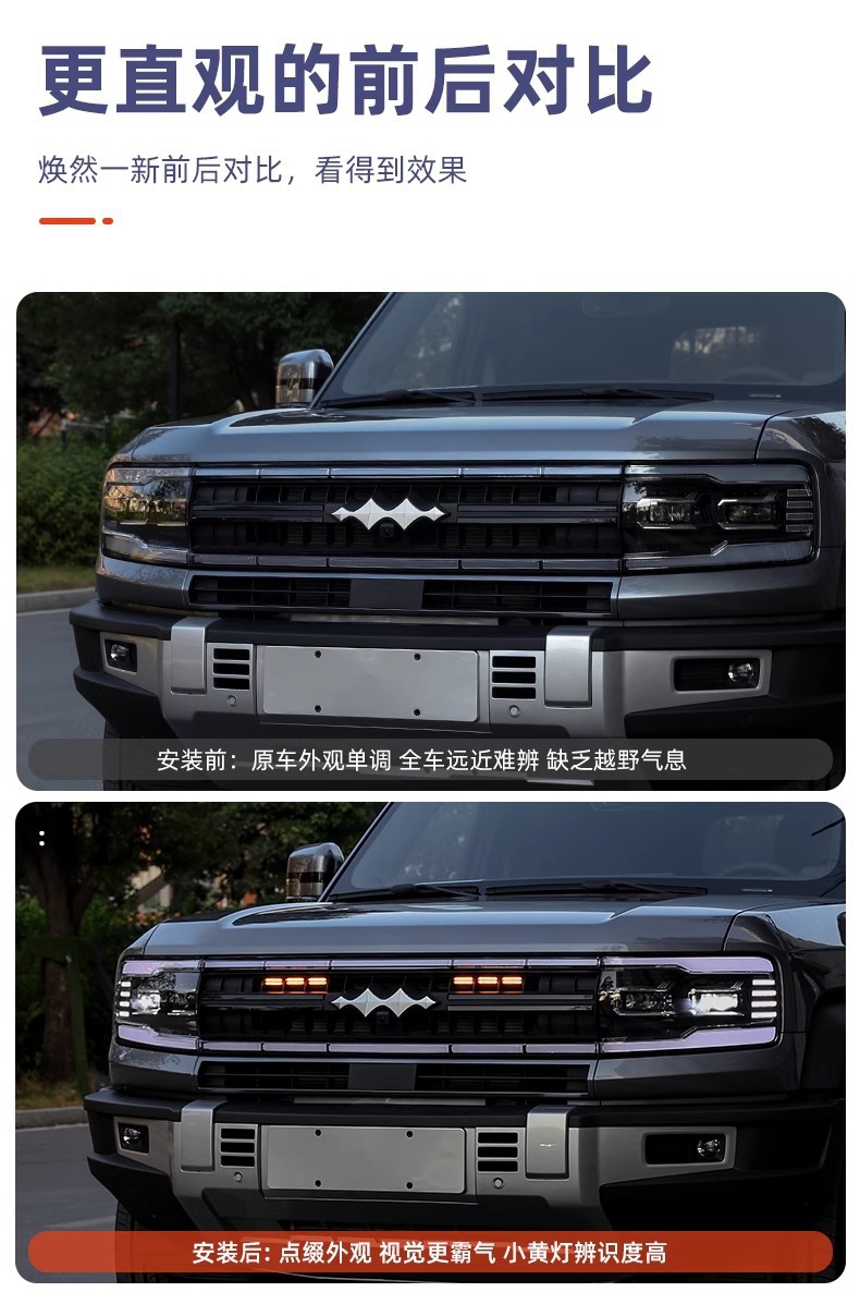 Upgrade your Fang Cheng Bao 5 with high-intensity amber LED grille lights. Durable, weather-resistant strobe DRLs designed for enhanced safety and off-road style.