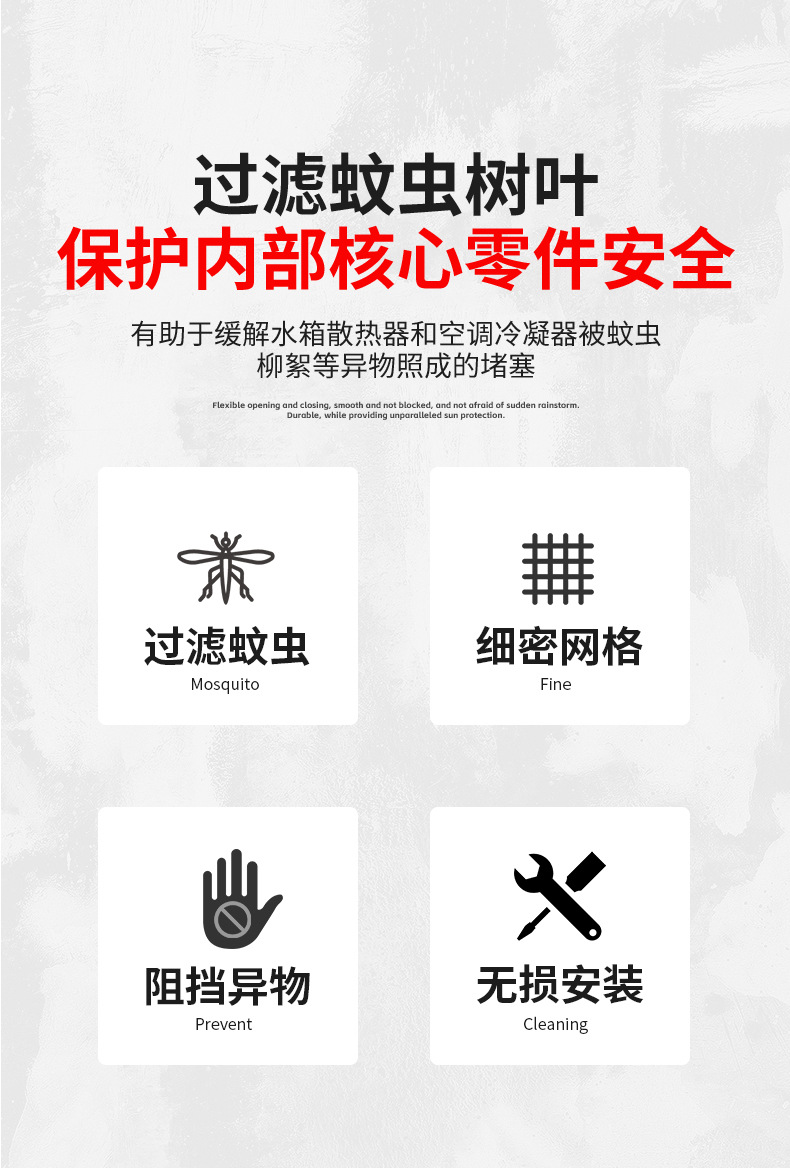 - Effective insect and debris protection prevents radiator damage and maintains airflow.