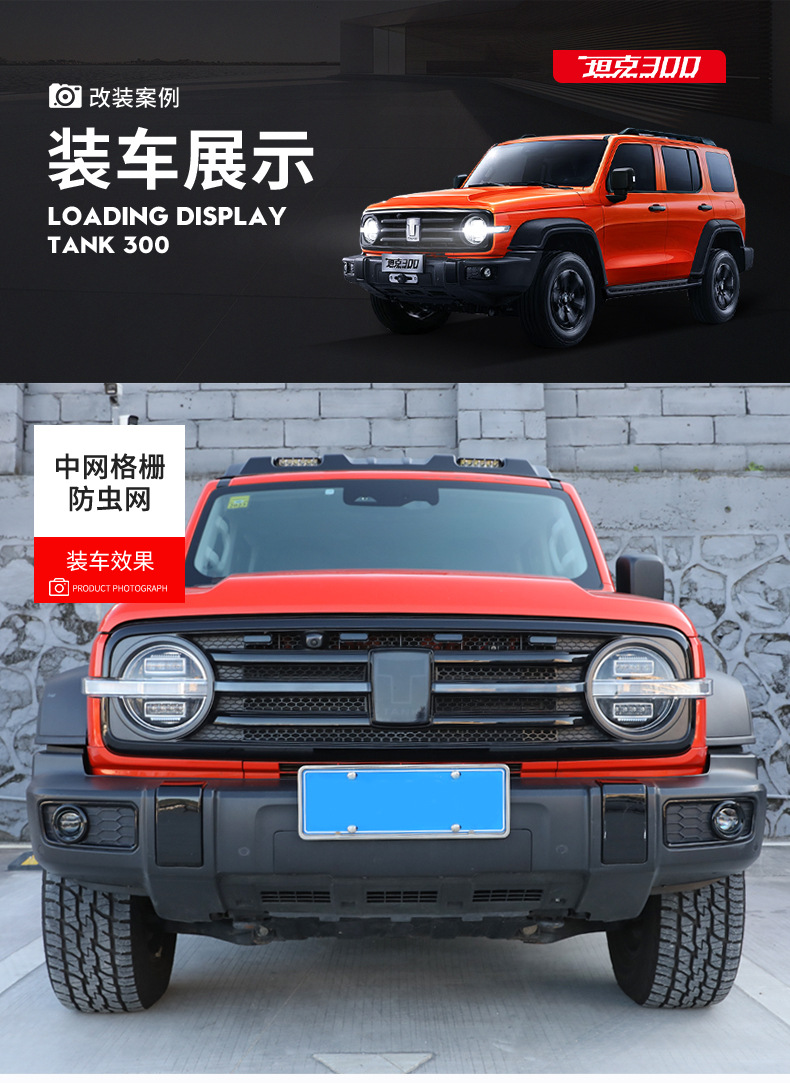 - Specifically designed to fit the front grille of the Tank 300 for a precise integration.