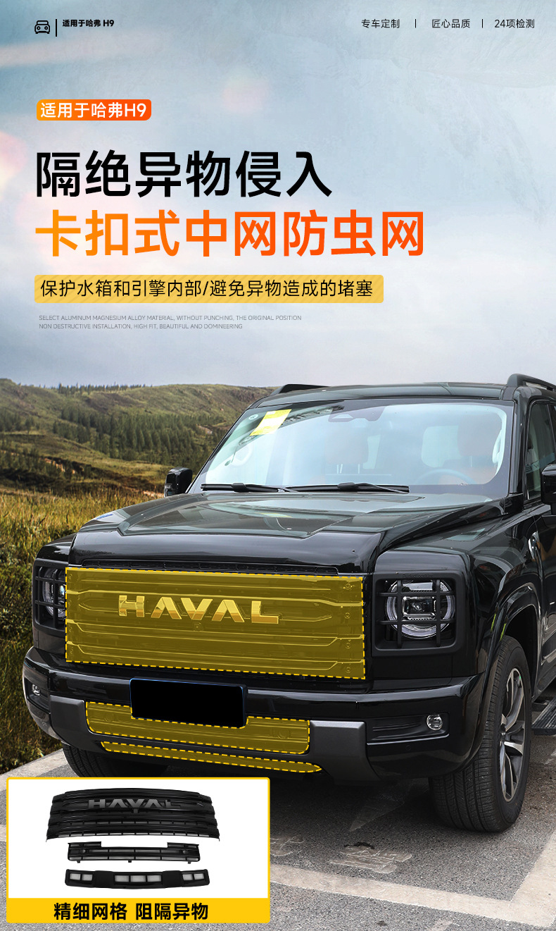 Tags: anti-insect net, car protective screen, condenser protector, front grille mesh, grille insert, Haval H9 accessories, radiator guard