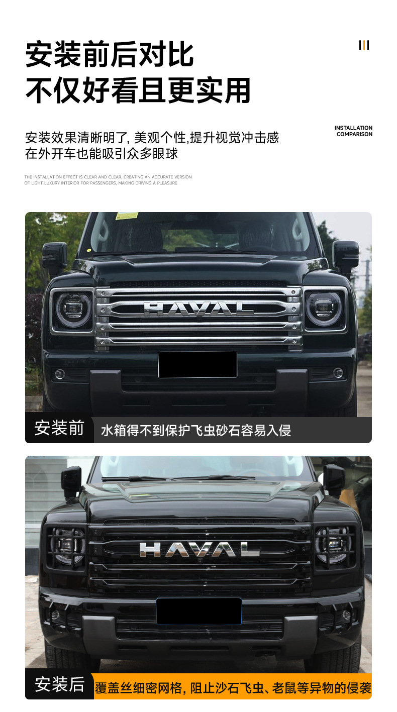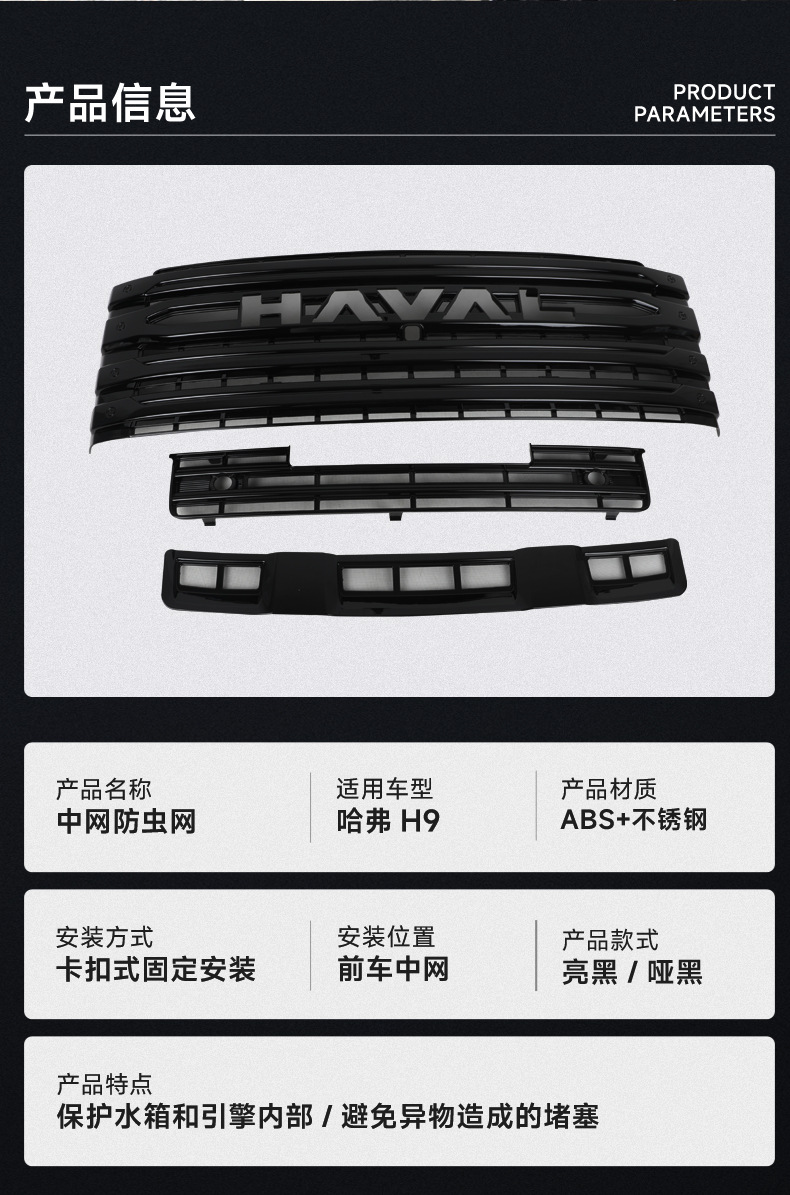 - Specific Design for Haval H9: Precision-engineered for the second-generation model to ensure a seamless fit with the vehicle’s front grille aesthetics.