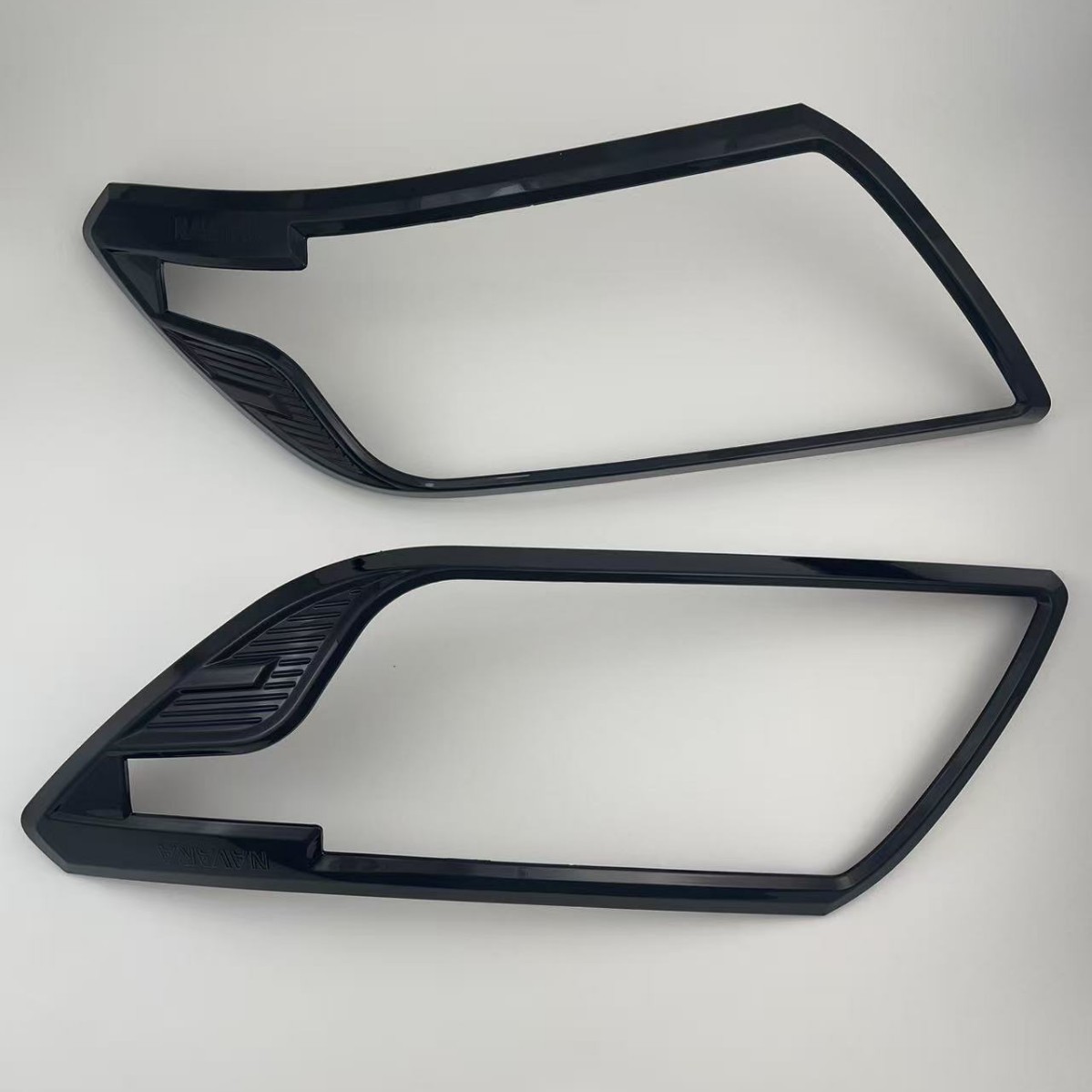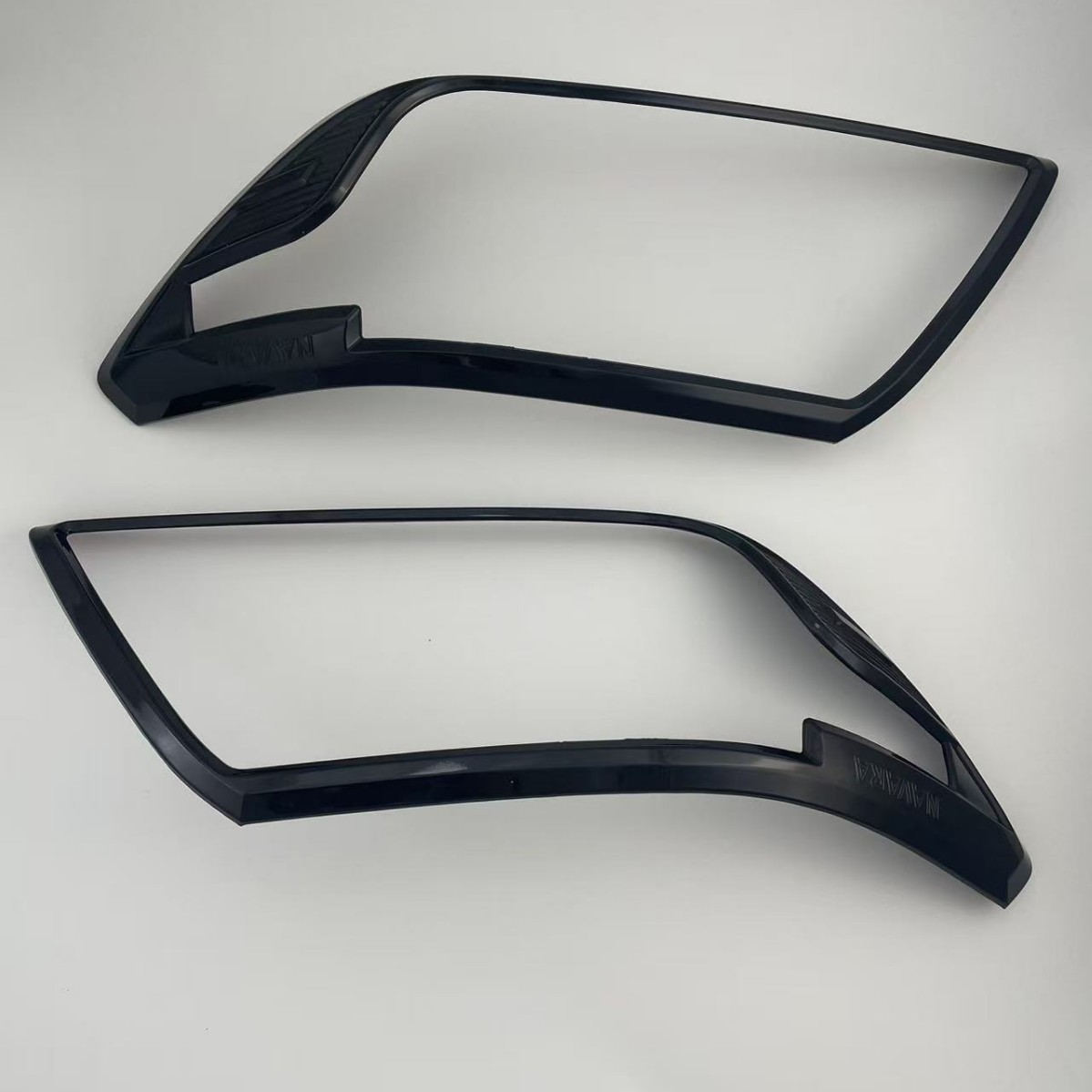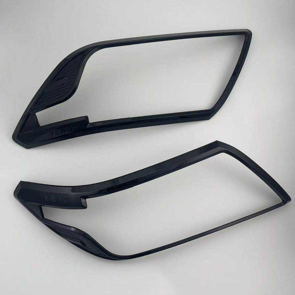 Tags: front light garnish, headlamp frame, headlight trim, lamp cover, matte black decoration, NP300 Accessories, pickup truck exterior