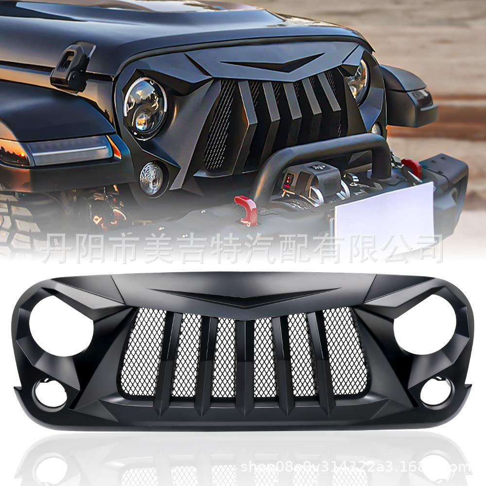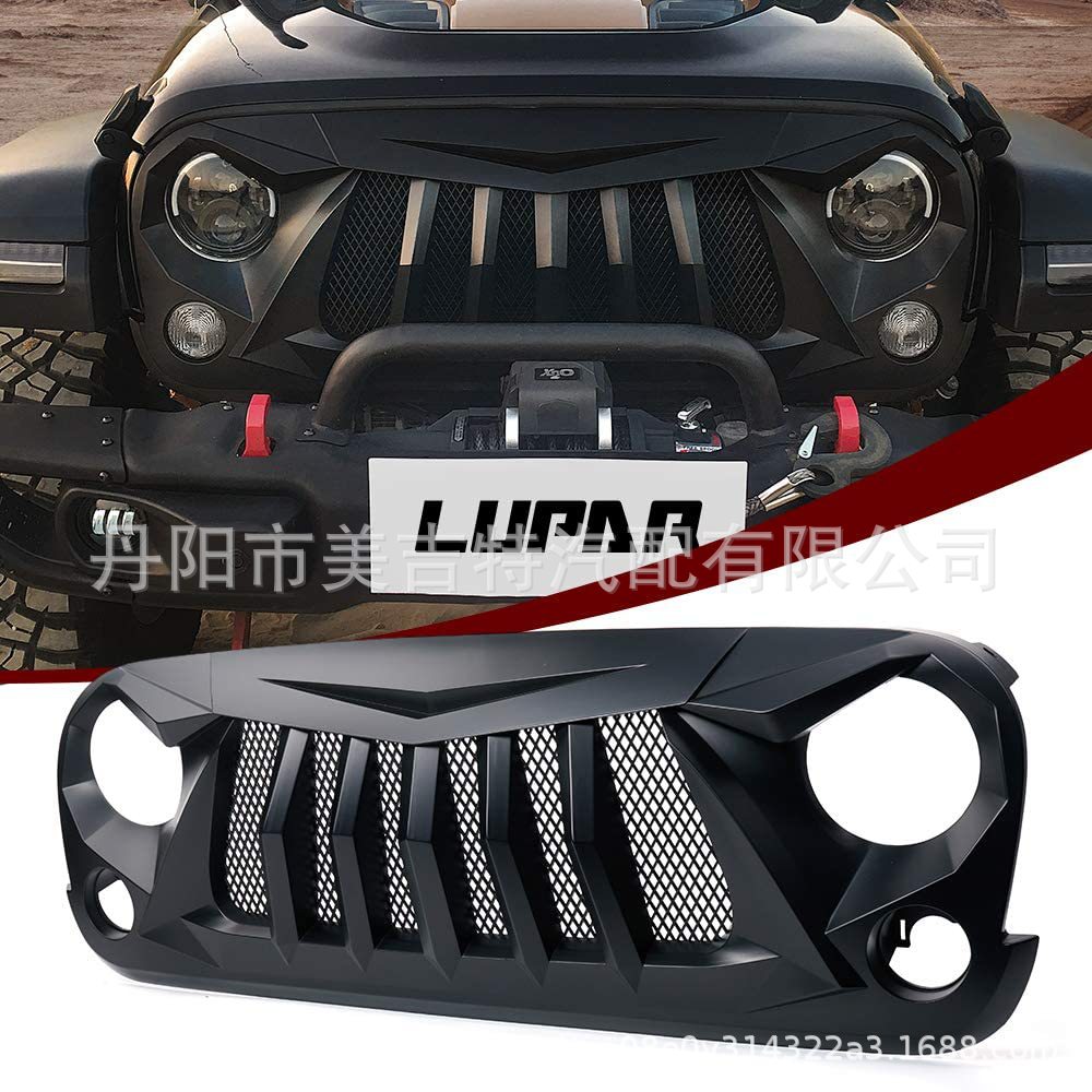 Front Hood Bumper Grille Matte Black Angry Eye Style for 2007-2017 Jeep Wrangler JK JKU