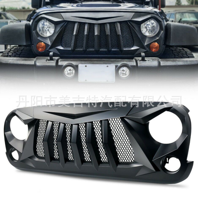 Transform your 2007-2017 Jeep Wrangler JK with this high-quality matte black ‘Angry Eye’ front grille. Durable ABS construction, easy bolt-on installation.