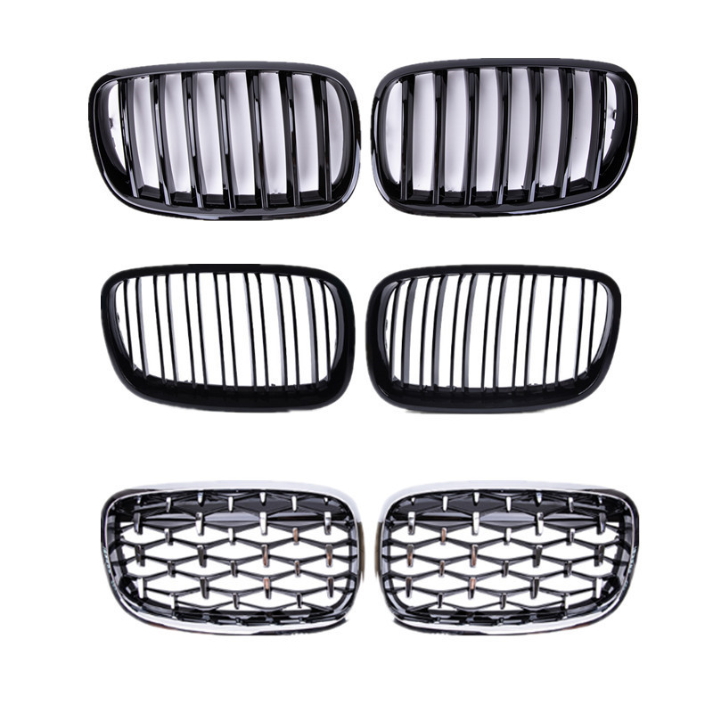 Upgrade your BMW X5 E70 or X6 E71 with this gloss black dual-slat diamond style front kidney grille. Durable ABS construction with easy bolt-on installation.