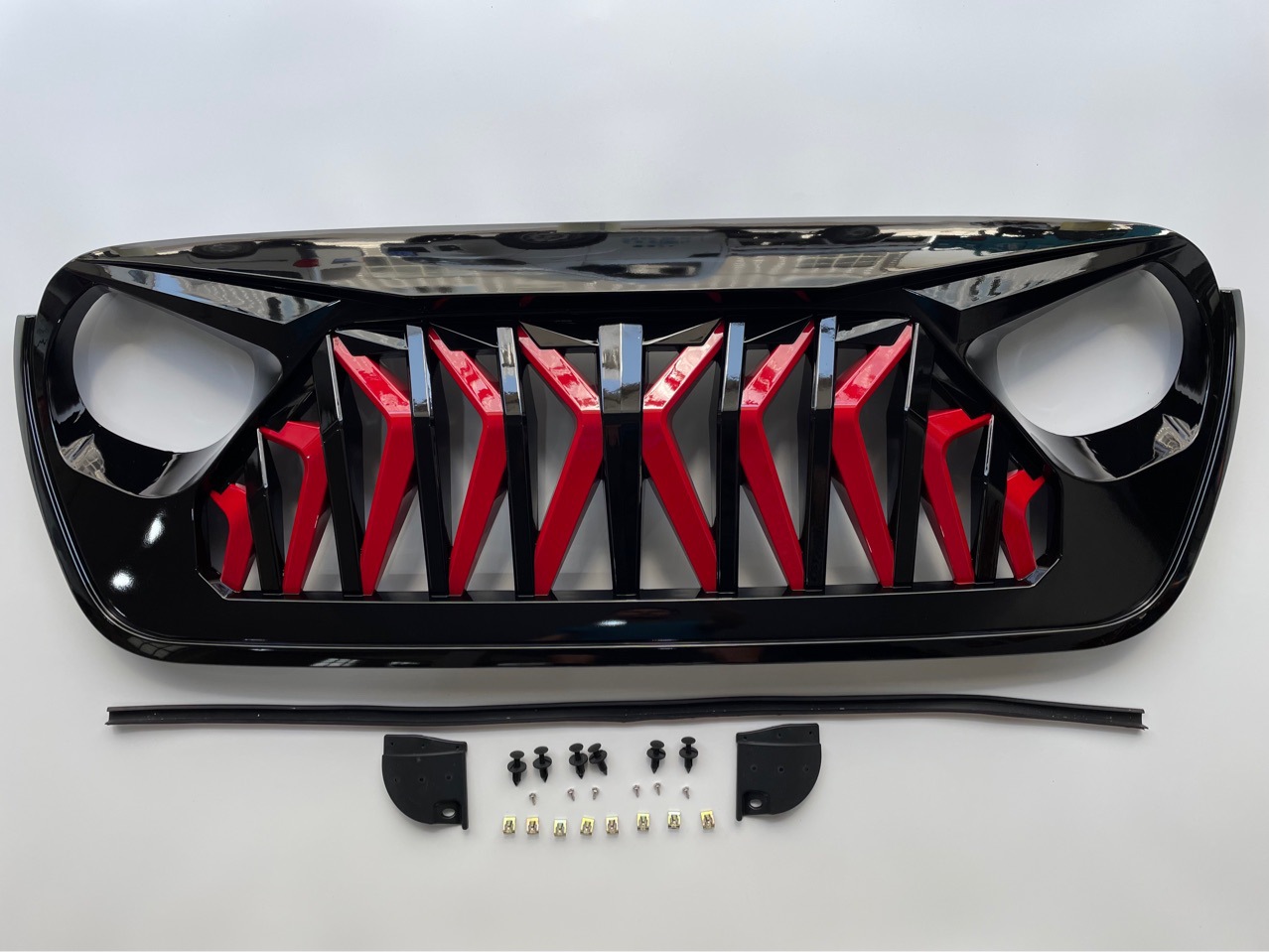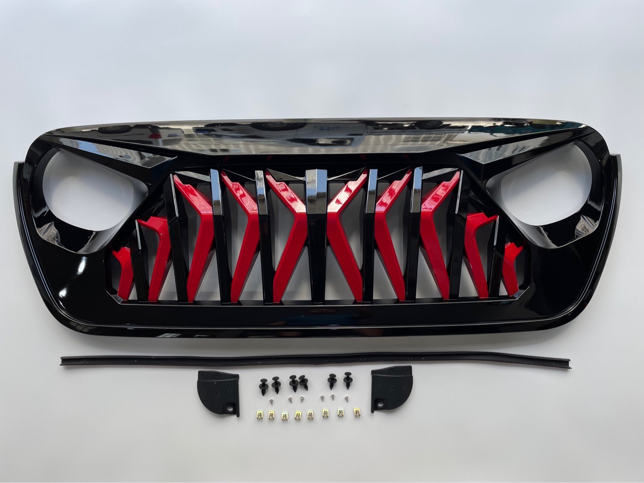 - Aggressive Shark Style Design: Transform your vehicle's front end with a striking 'Mustang style' shark-tooth aesthetic, featuring a bold black and red contrast for a unique off-road presence.