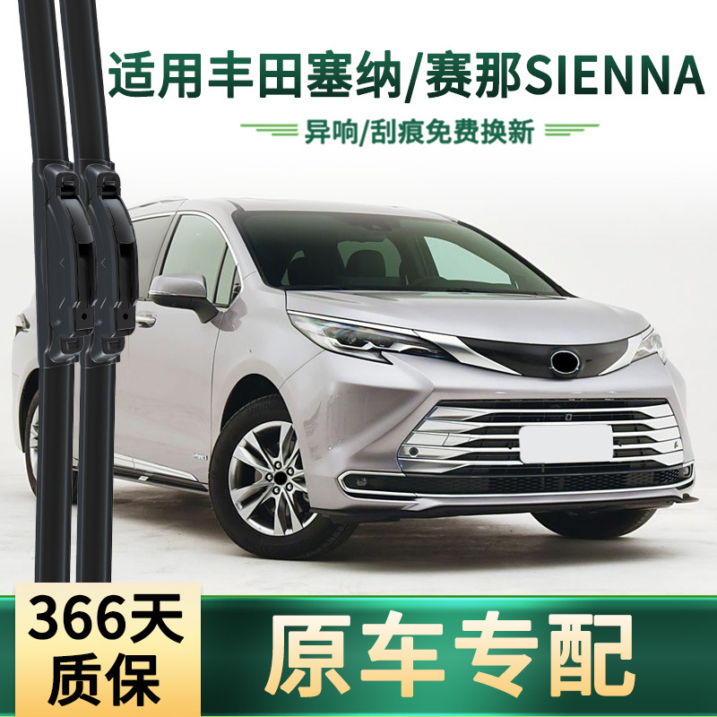 Upgrade your Toyota Sienna with premium silent frameless wiper blades. Engineered for all-weather performance, providing clear visibility and a streak-free wipe.
