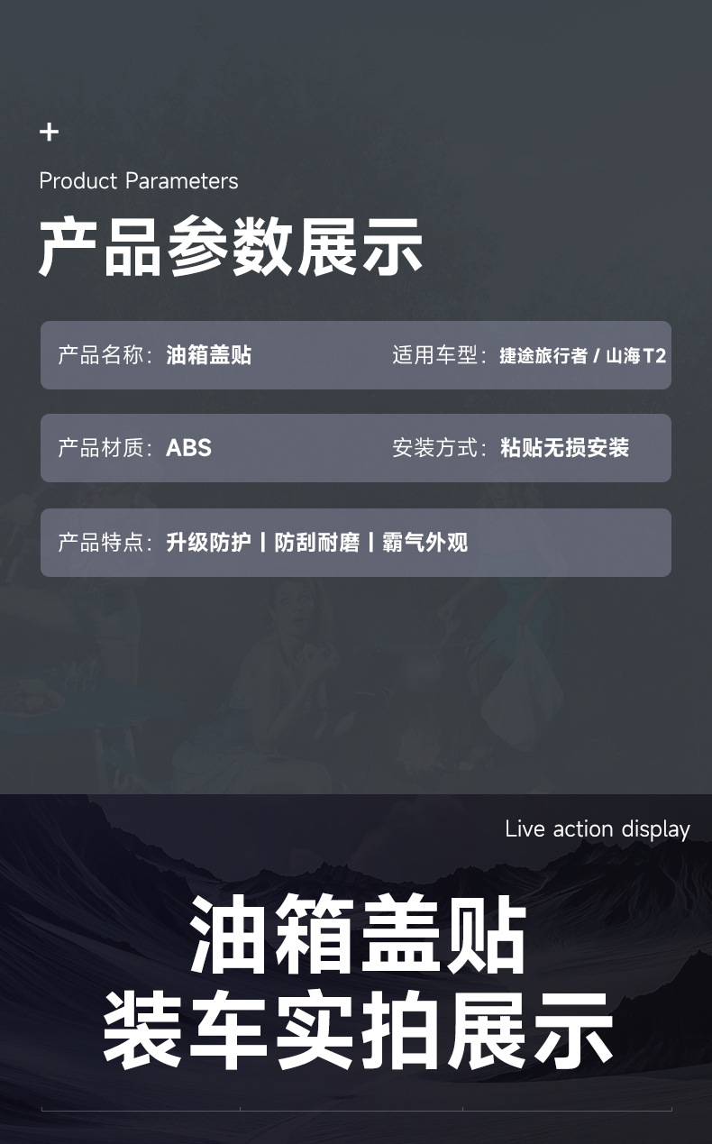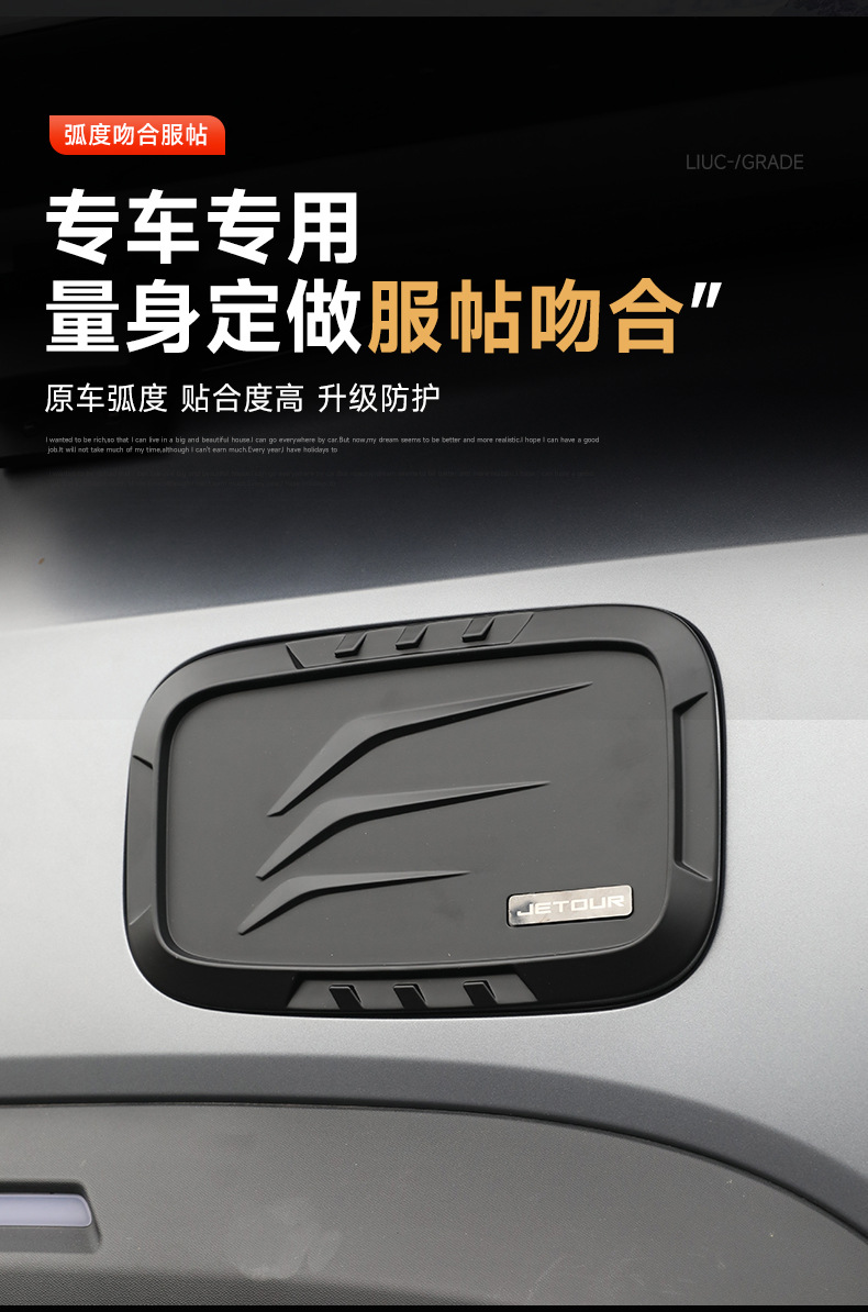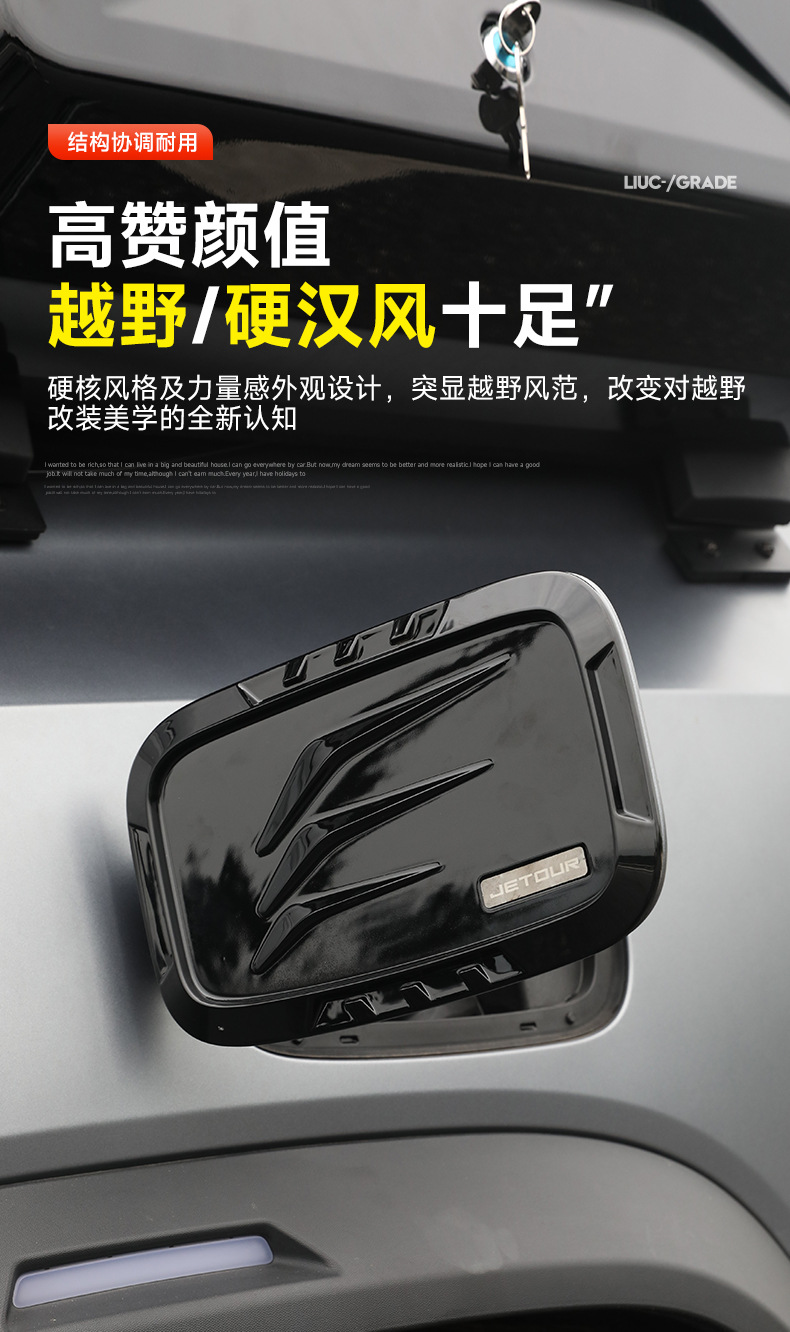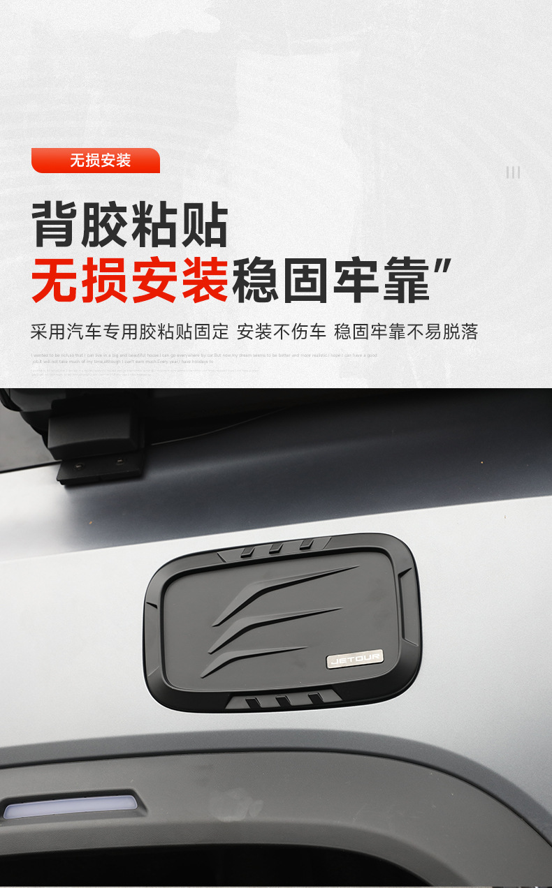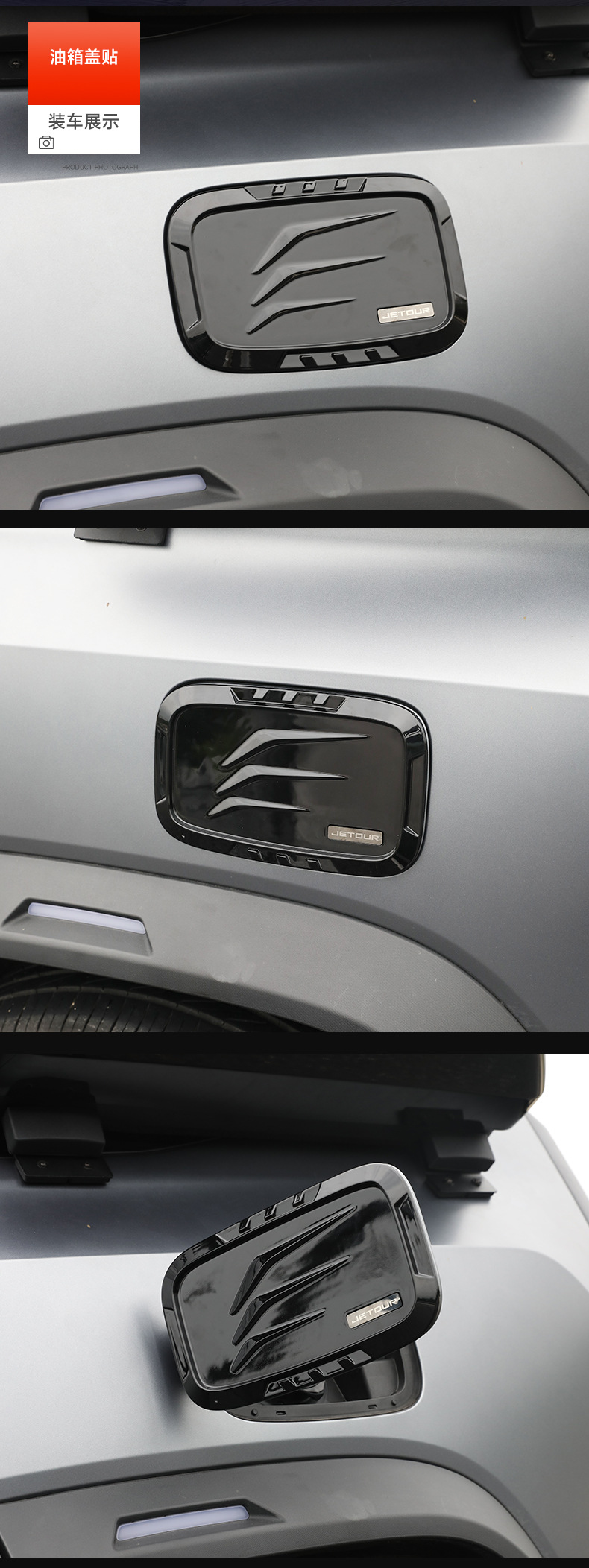 Upgrade your Jetour Traveler T2 with premium fuel tank cap decorative stickers. Durable chrome accessories for enhanced exterior styling and scratch protection.