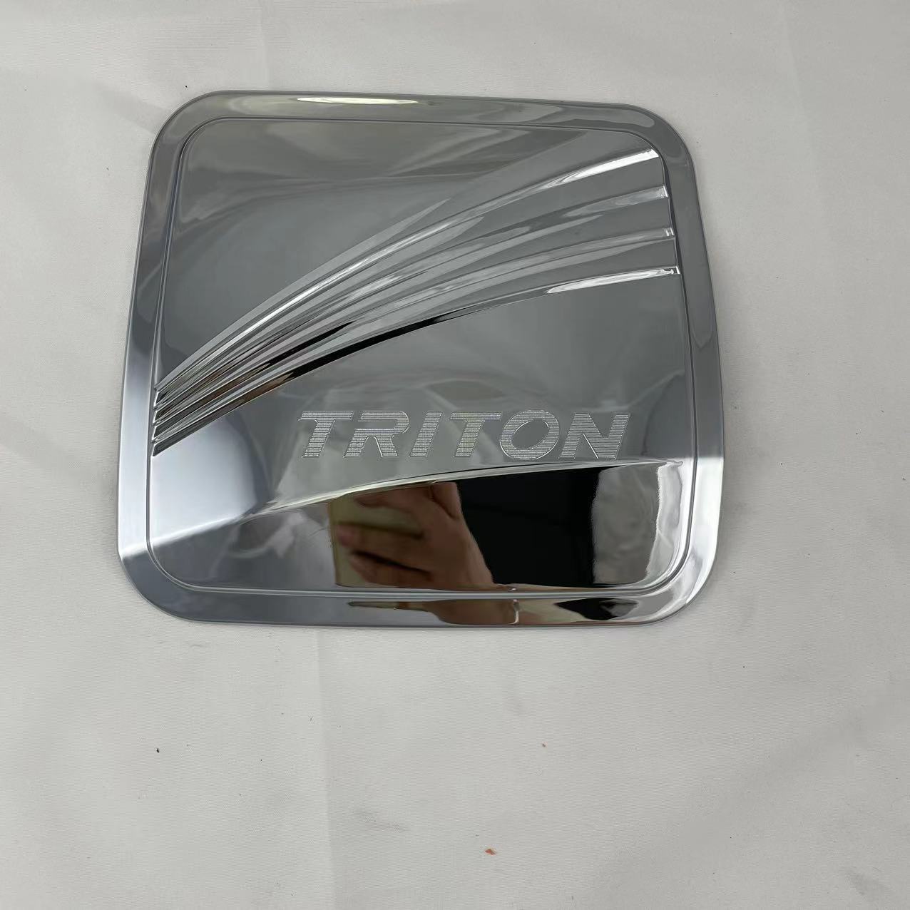 Tags: ABS chrome decoration, automotive fuel door guard, chrome fuel lid trim, fuel gas tank cover, gas cap sticker garnish, pickup truck exterior tuning, Triton L200 exterior accessories