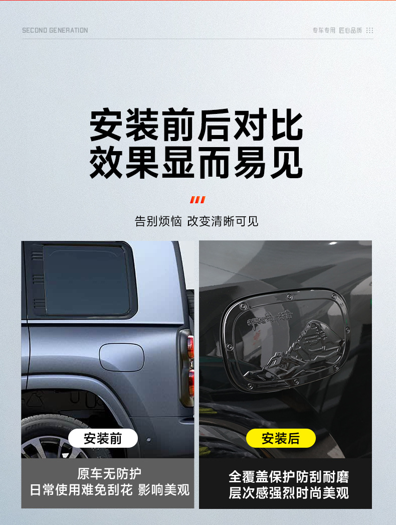 - Provides a protective barrier against scratches and daily wear while upgrading the vehicle’s appearance.