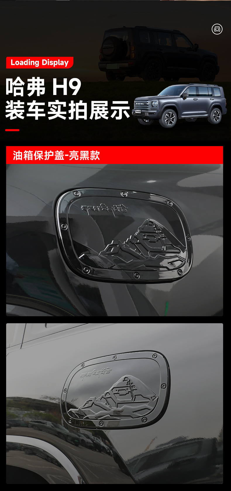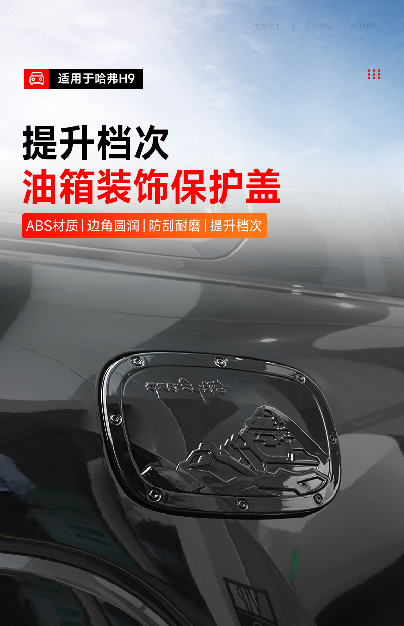 Upgrade your Haval H9 2024 with this matte black fuel tank cap cover. Durable ABS material provides scratch protection and a custom aesthetic look. Easy install.