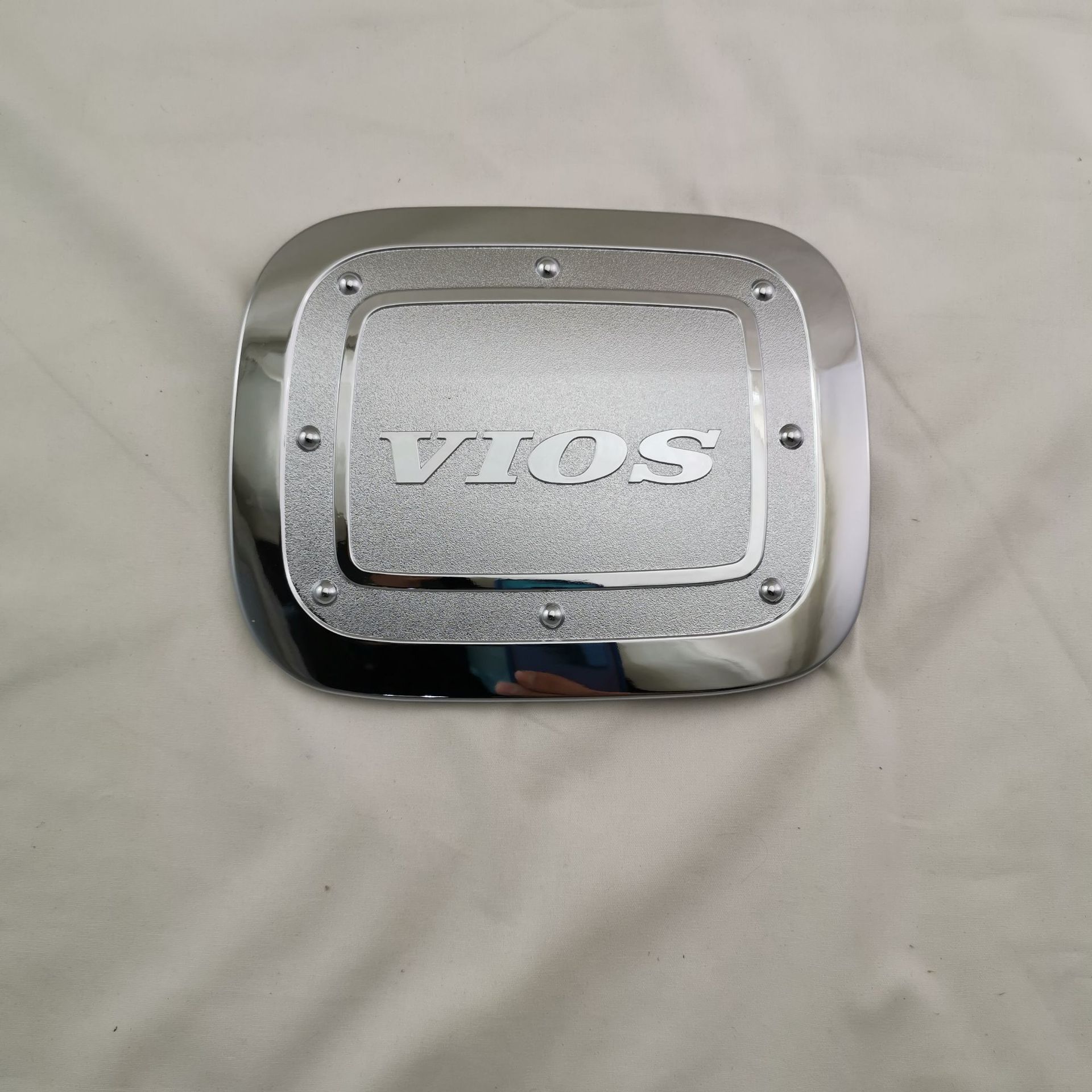 Tags: ABS fuel door protector, car styling accessories, chrome exterior trim, Fuel Tank Cover, gas cap garnish, vios gas cap decor