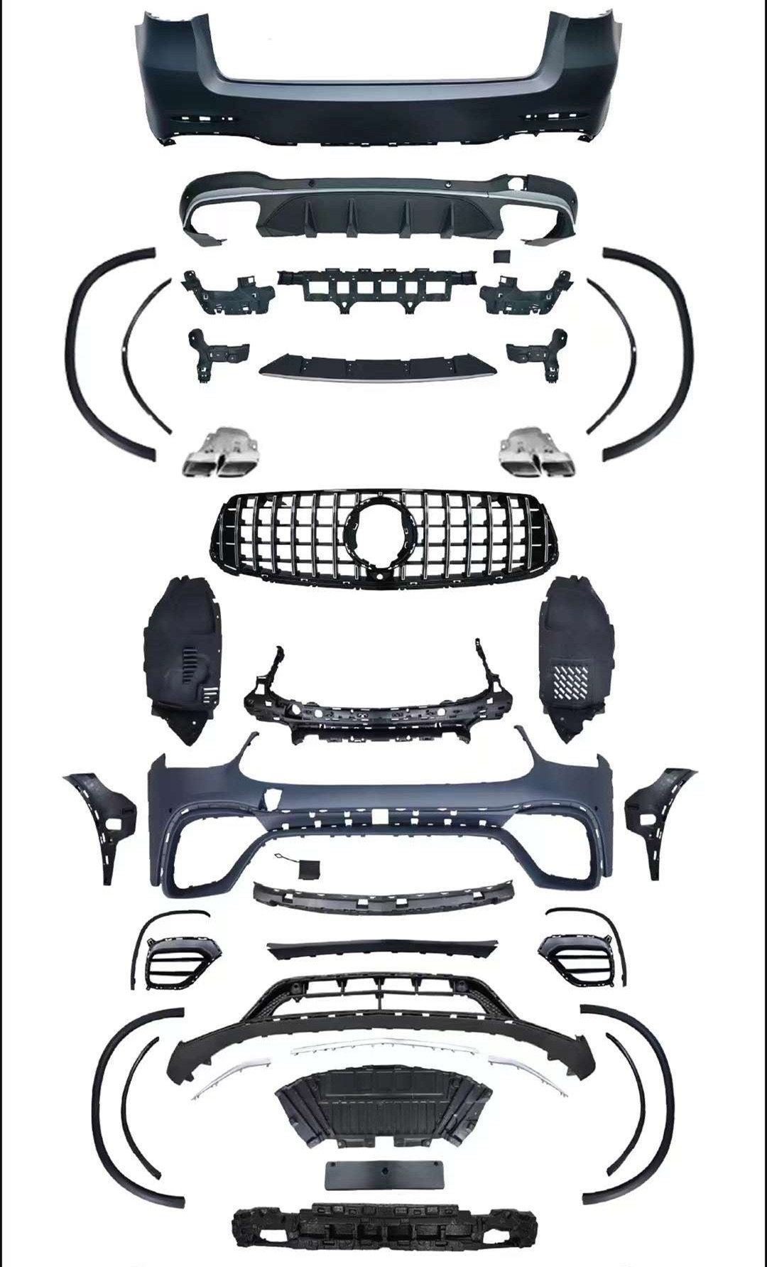 - Kit includes front grille, lower diffusers, and trim accents to achieve the comprehensive GLC63S wide-body look.