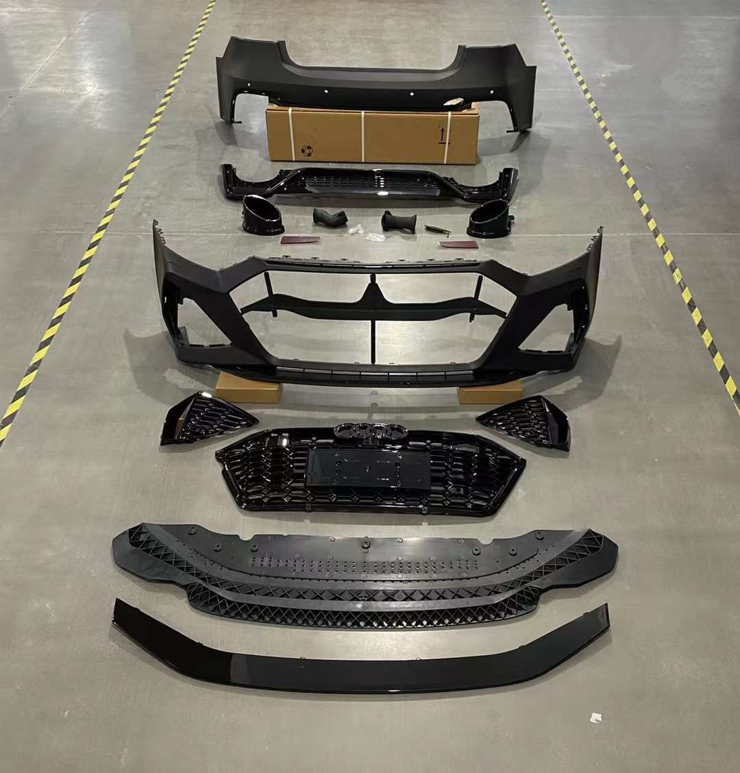 Upgrade your Audi A7 C8 with this RS7 style full body kit. Includes front bumper, mesh grille, rear diffuser, and exhaust tips for a premium sporty aesthetic.