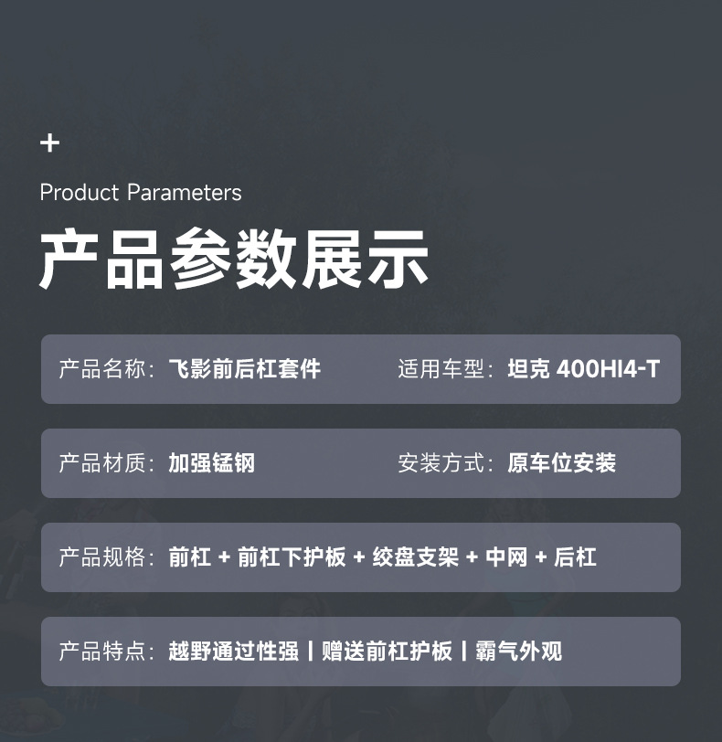 Full Body Kit Carbon Fiber Style Exterior Upgrade Set for Tank 400 Hi4-T Front Grille Rear Bumper Hood Spoiler